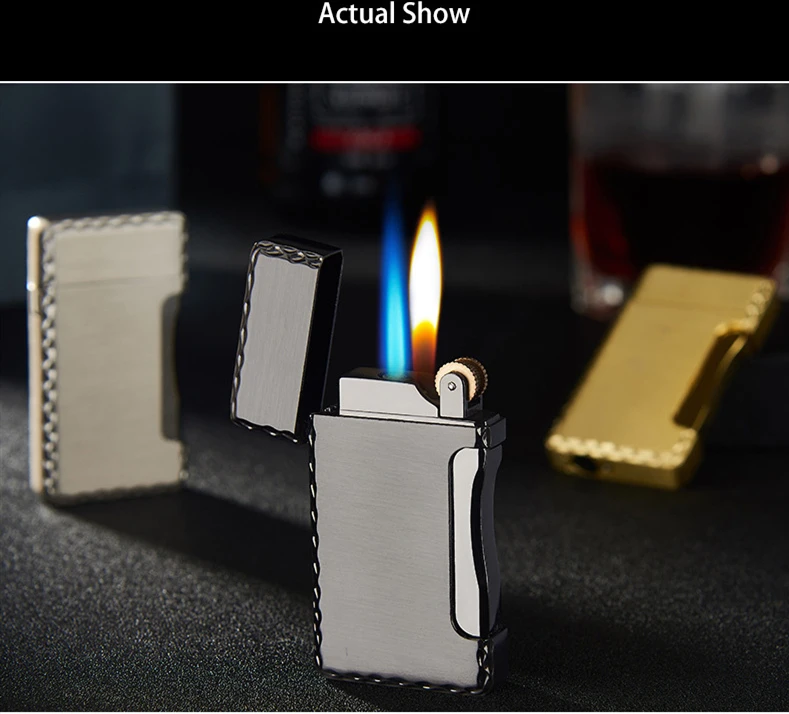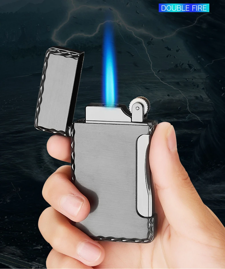 2 в 1 прикуривателя фонарь Зажигалка 1 насыщенно-Бутан ветрозащитный легкий металлический карманная зажигалка для Кухня синий тяжелый пламени