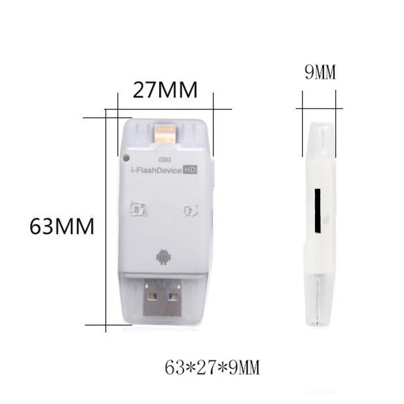 * 3 в 1 кардридер с 3 различными интерфейсами: разъем Lightning для устройств IOS; Разъем Micro USB для устройств Android; Разъем USB для компьютеров/компьютеров Mac