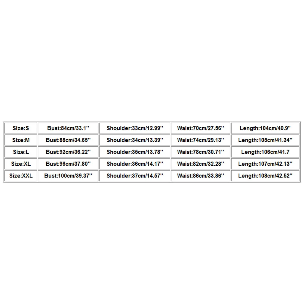 Примечание: В связи с возможными физическими различиями между различными мониторами, фотография продукта является только иллюстрацией и может не точно отразить фактический цвет полученного товара Размеры Обхват груди Сумка на плечо Обхват талии Длина S 84 см/33,1'' 33 см/12,99'' 70 см/27,56'' 104 см/40,9" М 88 см/34,65'' 34 см/13,39'' 74 см/29,13'' 105 см/41,34'' L 92 см/36,22'' 35 см/13,78'' 78 см/30,71'' 106 см/41,7 XL 96 см/37,80'' 36 см/14,17'' 82 см/32,28'' 107 см/42,13'' XXL 100 см/39,37'' 37 см/14,57'' 86 см/33,86'' 108 см/42,52''