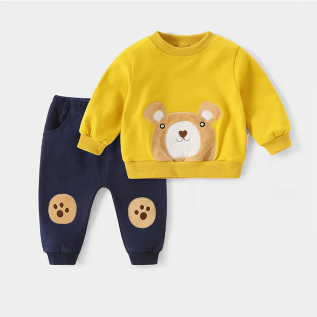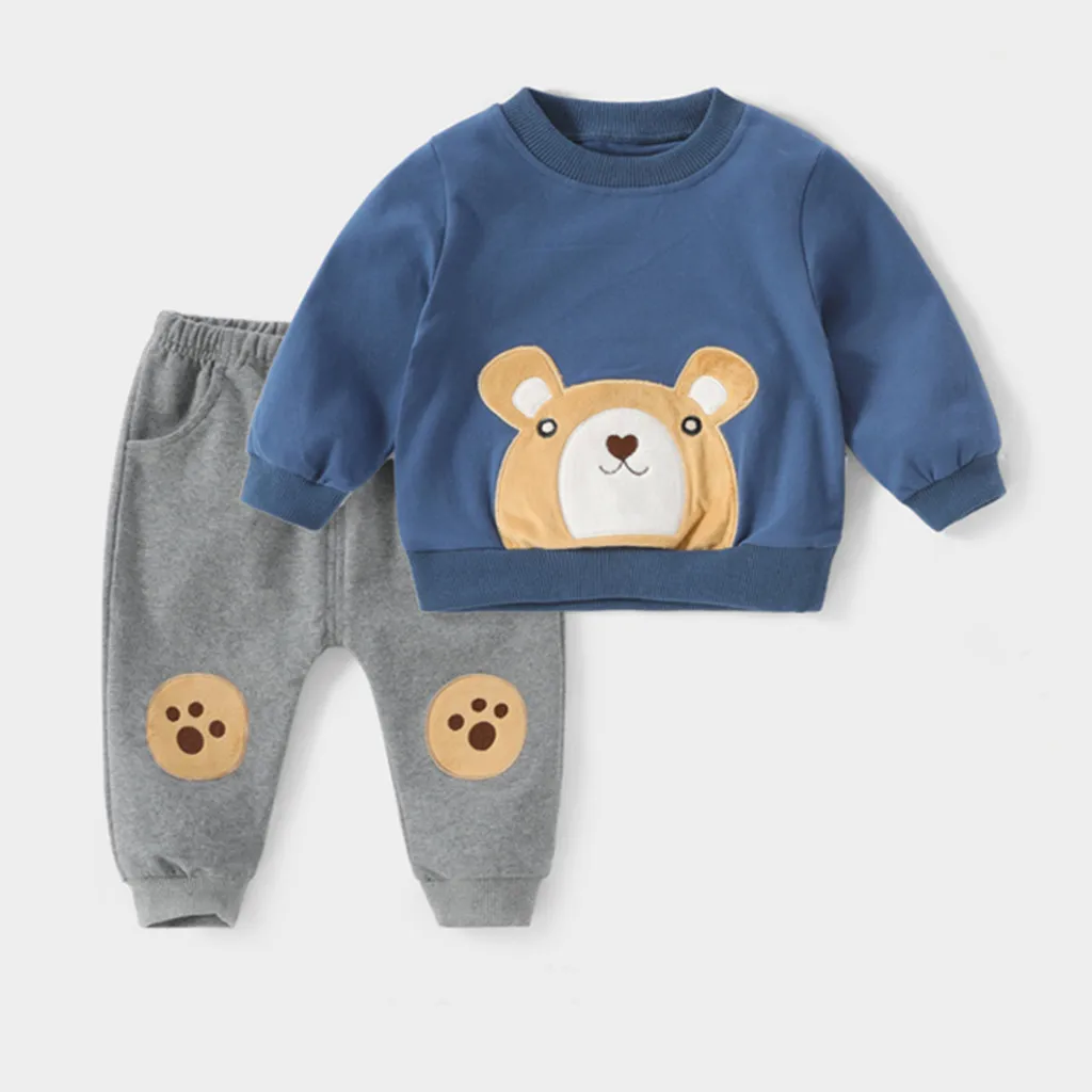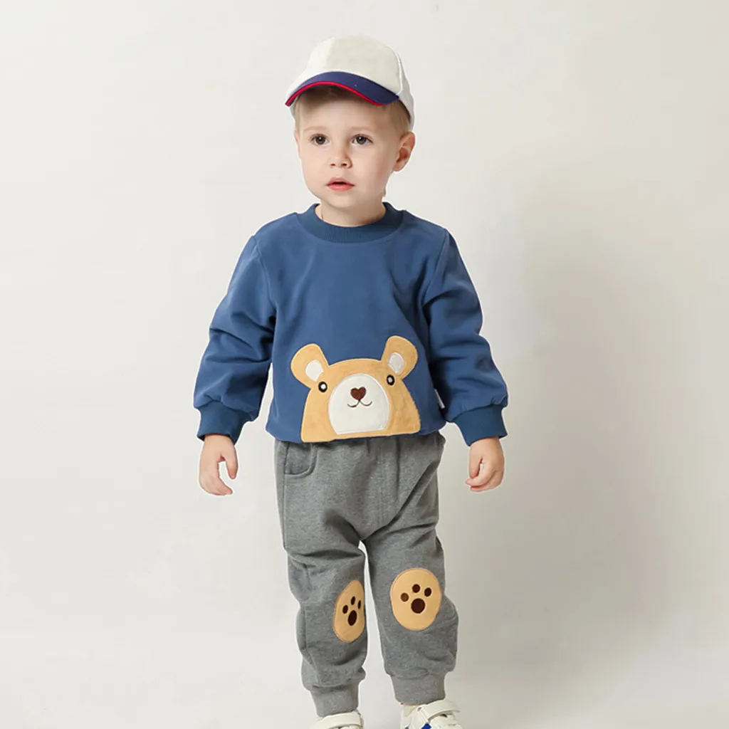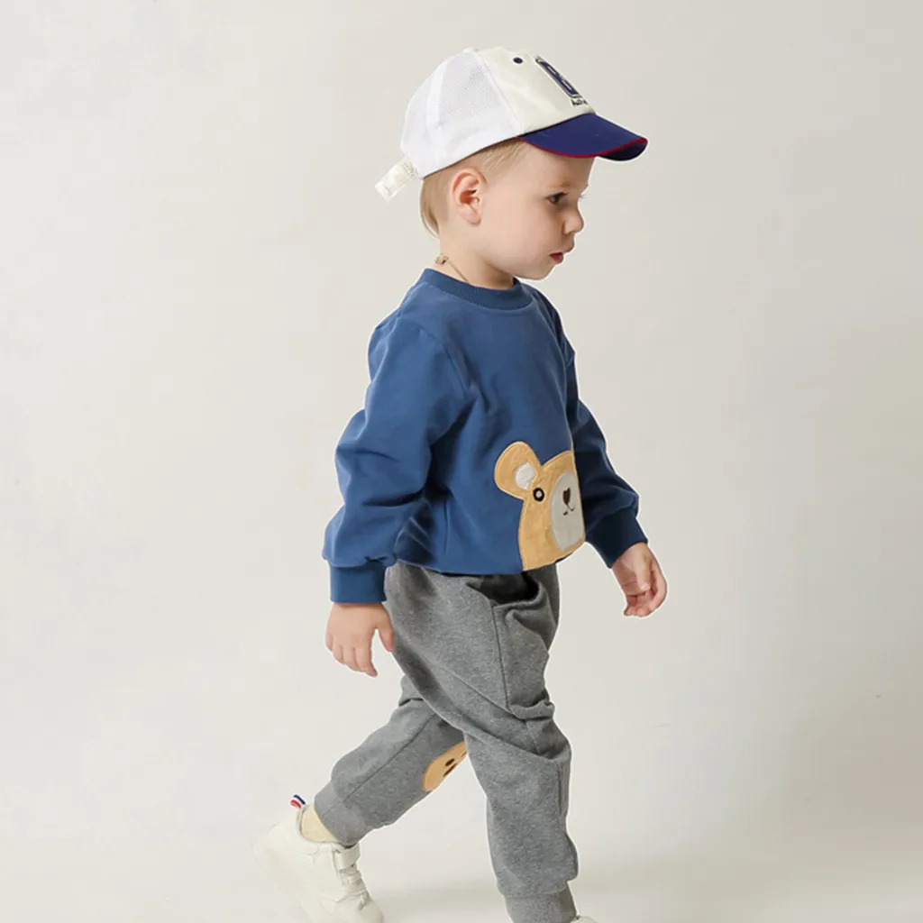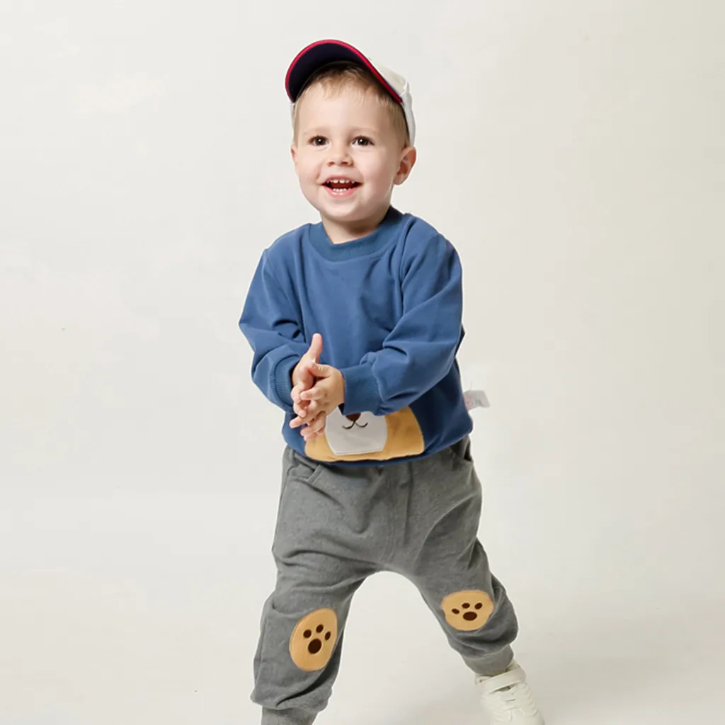 Футболка с рисунком медведя для маленьких мальчиков, топы, свитшот, штаны, комплект со штанами, комплекты одежды