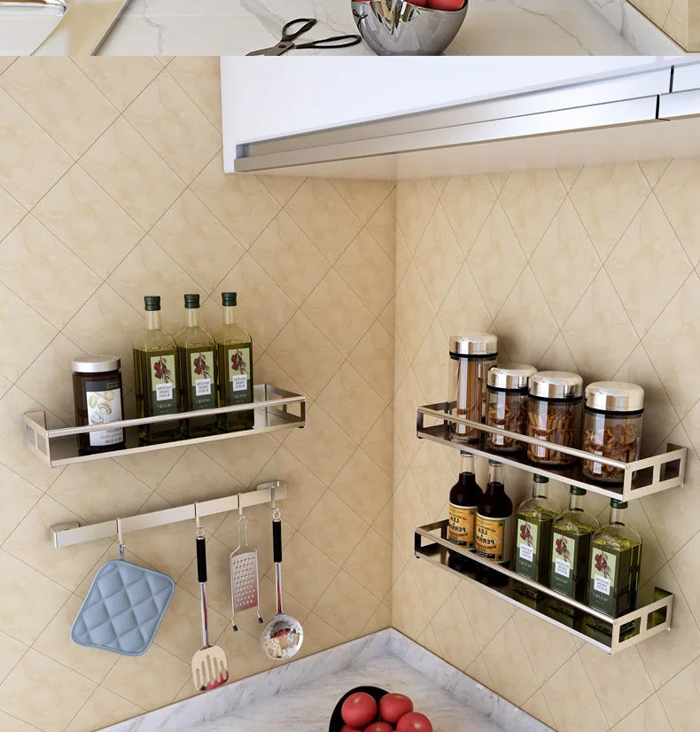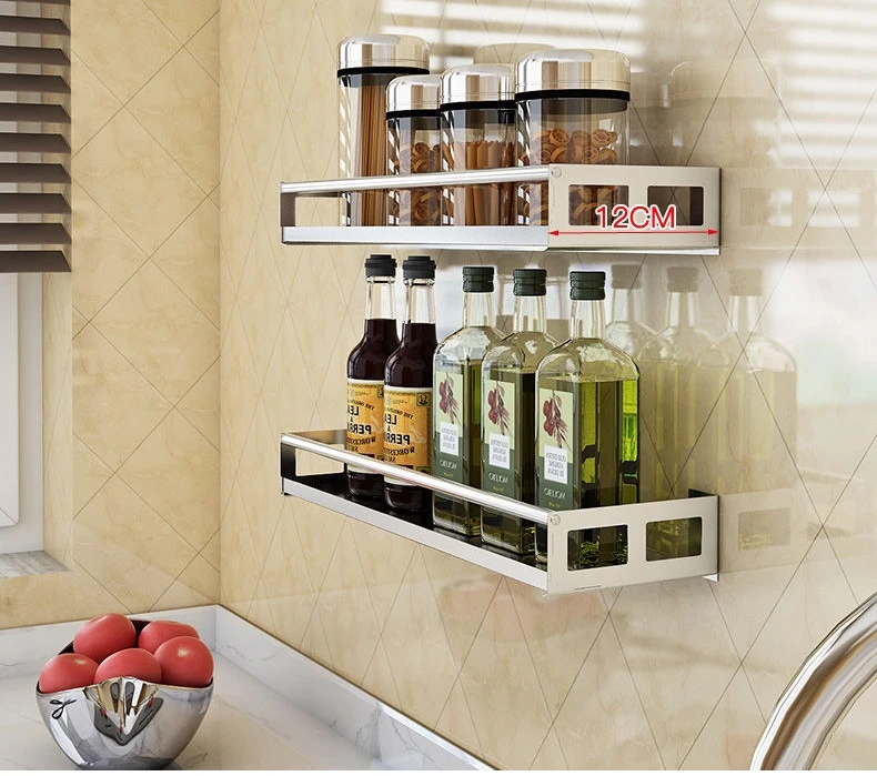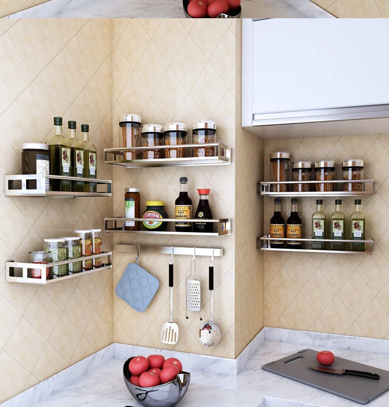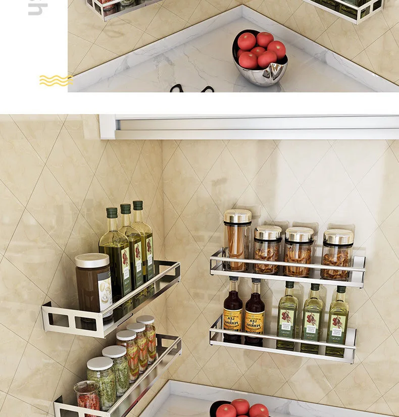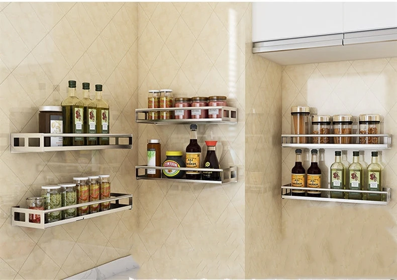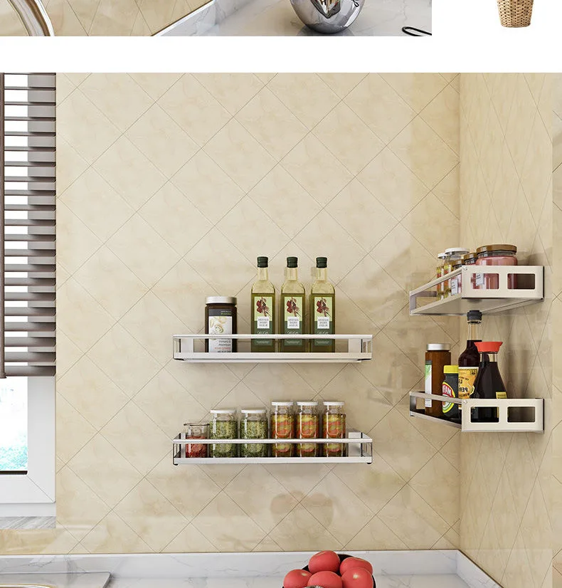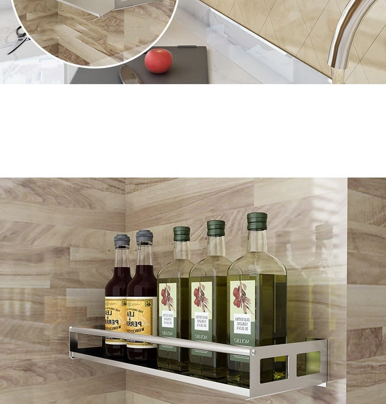 1. Все эти кухонные стойки изготовлены из нержавеющей стали 304. Не беспокойтесь о ржавчине. Мы также предлагаем липкий клей, вам не нужно сверлить. 2. Доска внизу может быть снята и очищена.