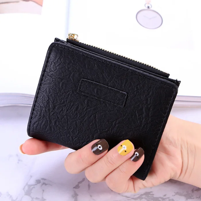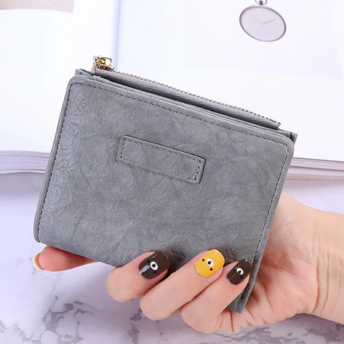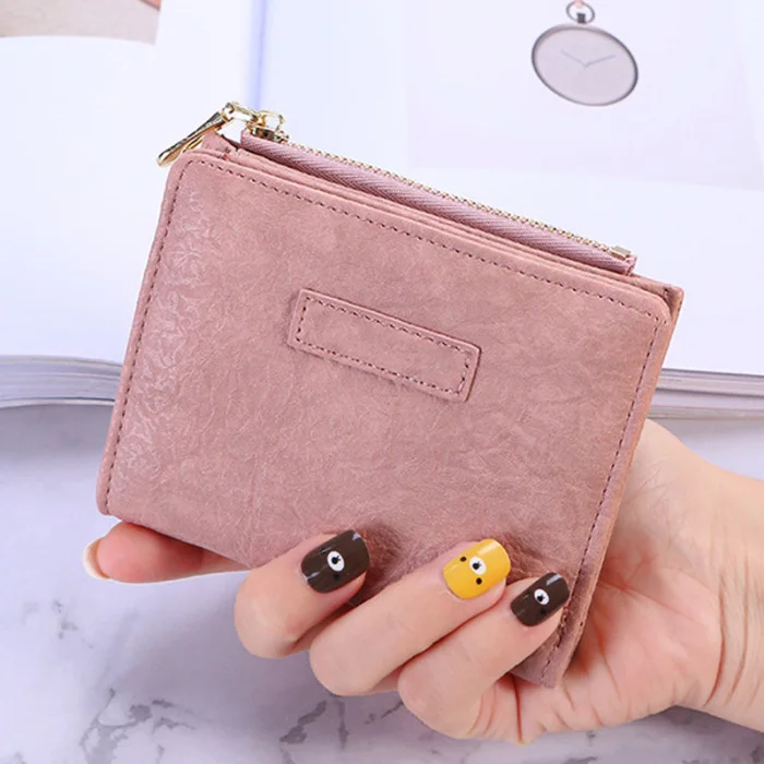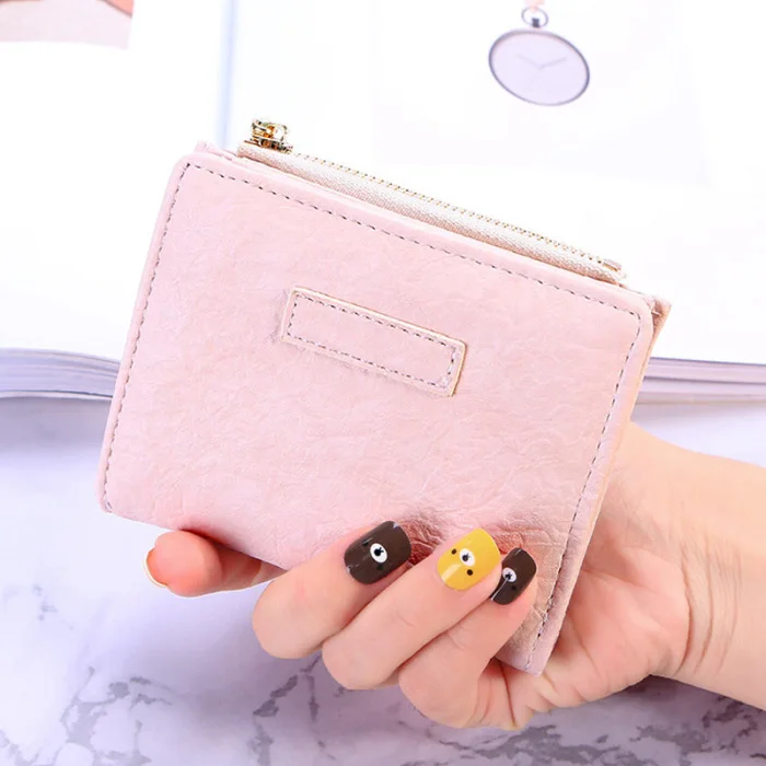 Новинка, женский кошелек, Одноцветный, из искусственной кожи, 2 складки, на молнии, маленький кошелек для покупок, MV66
