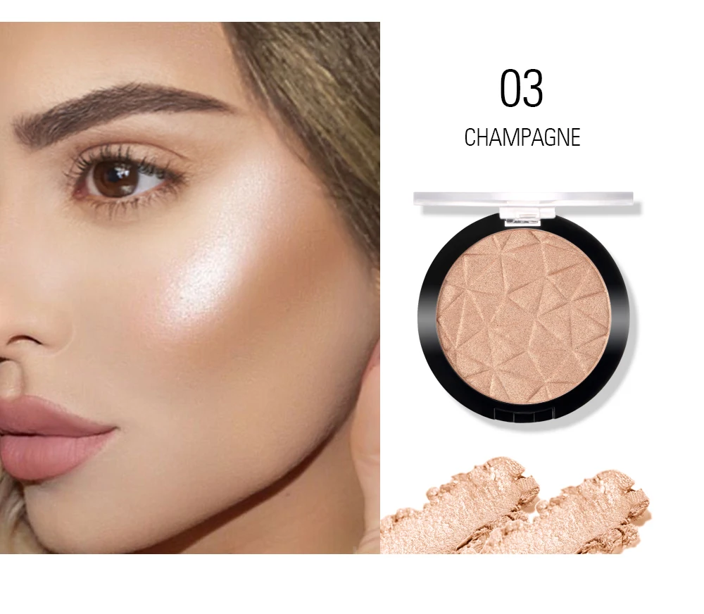 Specification: *Color :3Colors for Choose *100% Brand new and high quality *Lightweight,Portable size, easy to carry. *Suitable for professional use or home use. *Smooth, Glitter, Soft,Brightening skin Package included: 1pc Highlighter Powder