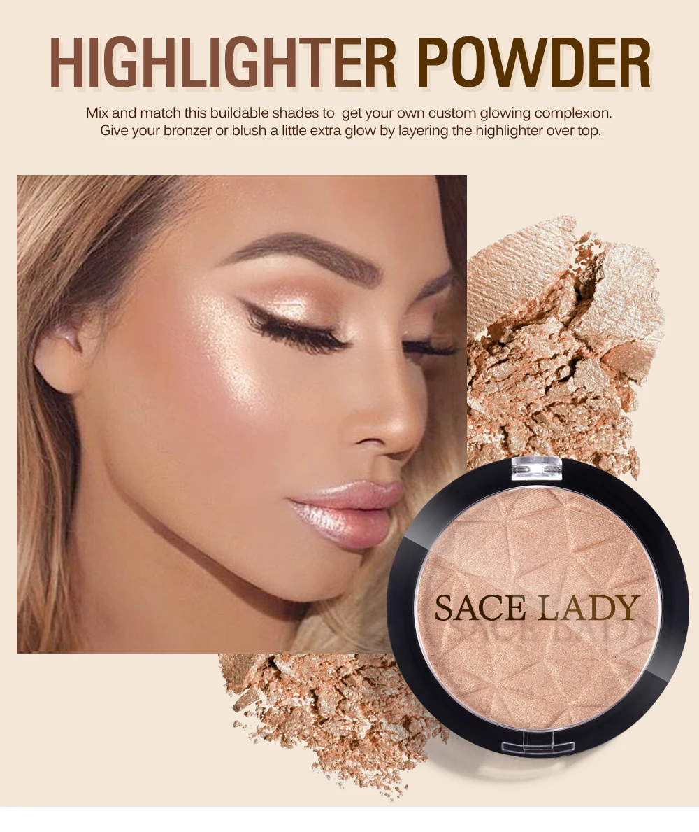 SACE LADY 3 Color Highlighter Powder Palette Makeup Glow Face Contour Shimmer Powder Illuminator Highlight Cosmetics Women