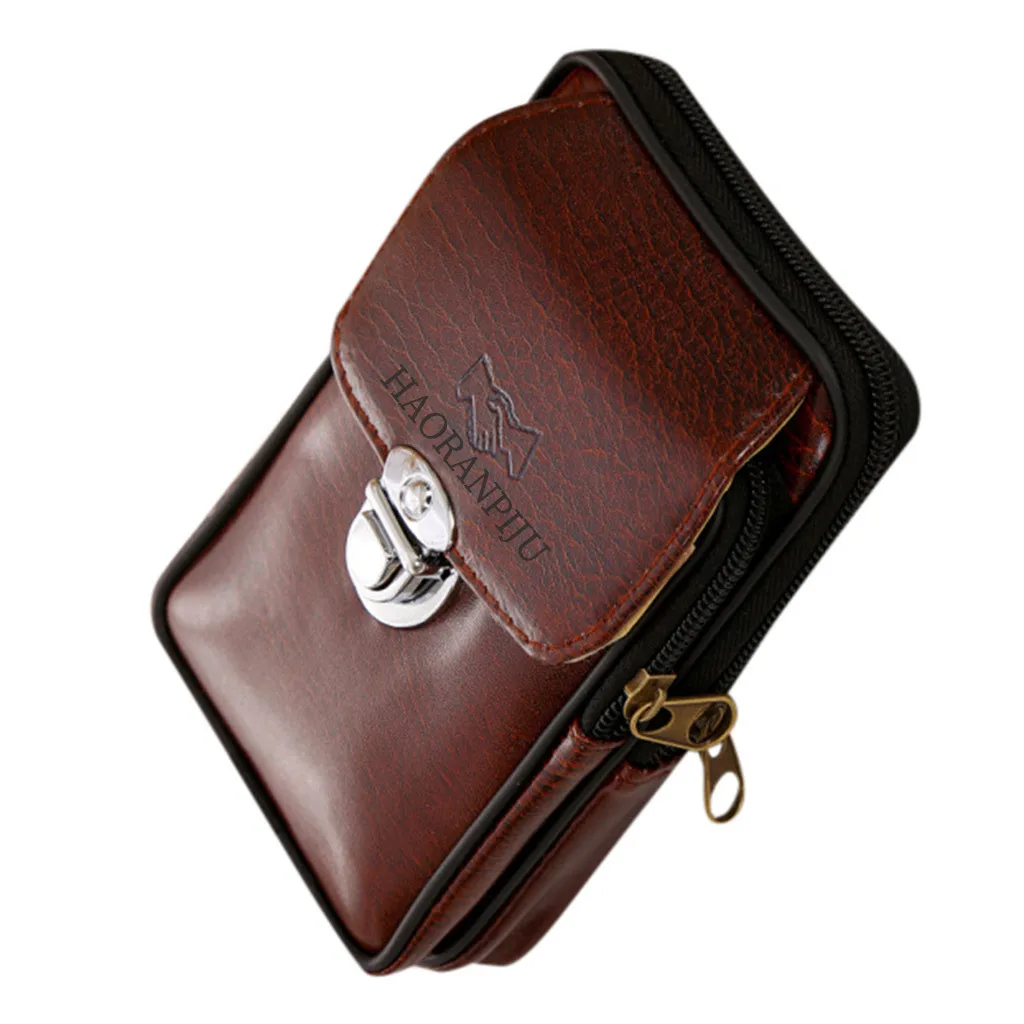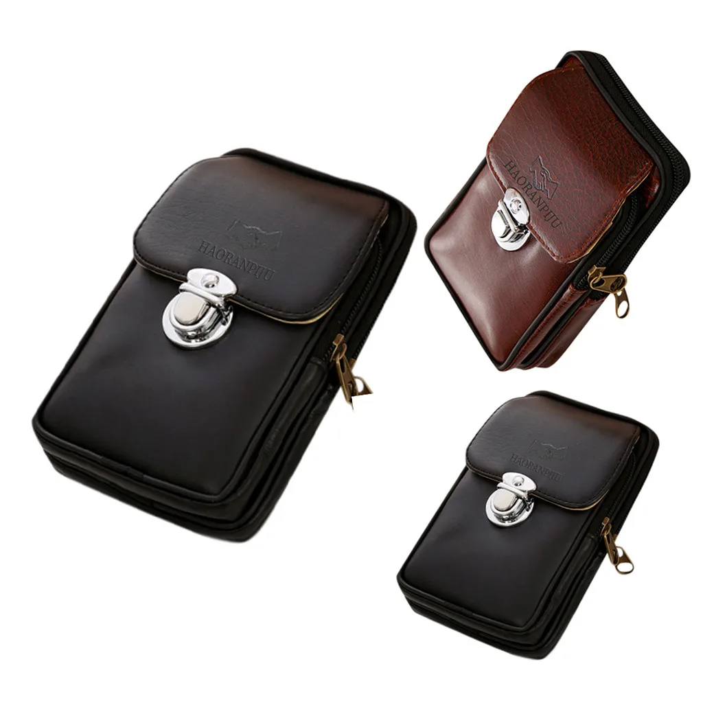 Мужская простая поясная сумка в стиле ретро дикая Повседневная двухслойная мобильный телефон поясная сумка кожаная уличная поясная сумка элегантная сумка-мессенджер