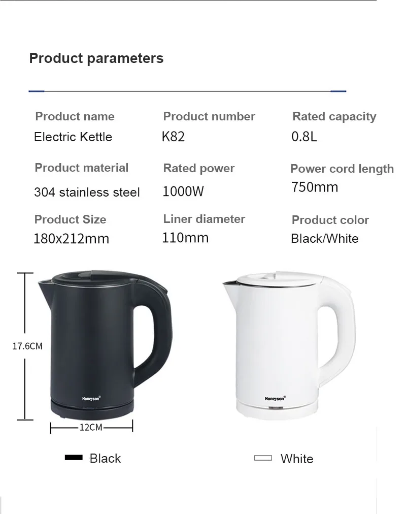 220V 304 Нержавеющая сталь Электрический чайник быстро кипения воды чайник Кухня анти-сухой горения, где не видно отпечатков пальцев чайник 0.8L