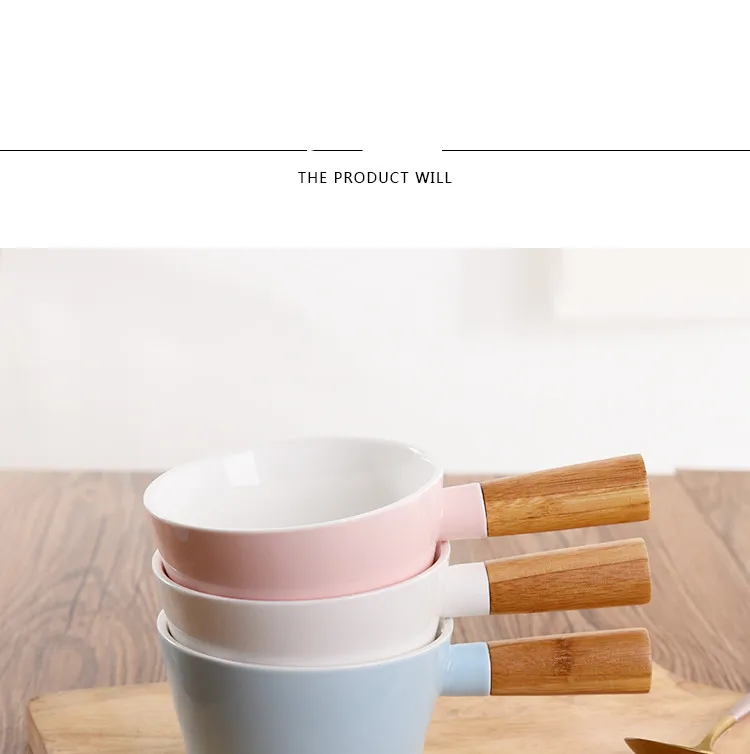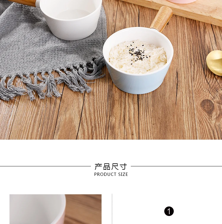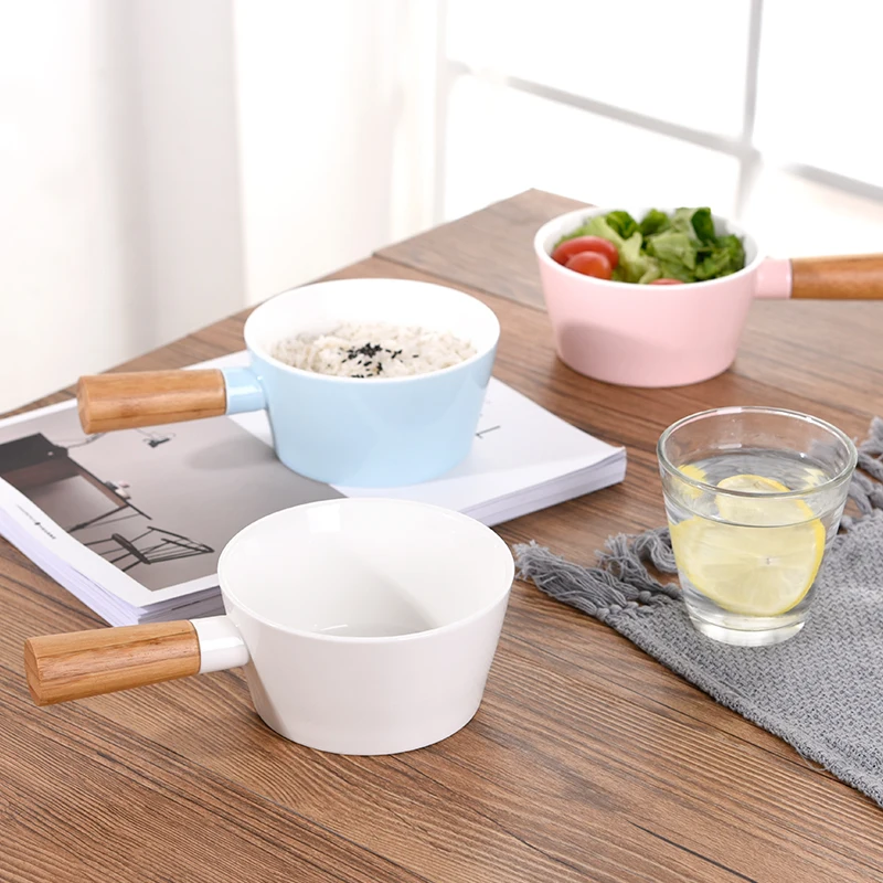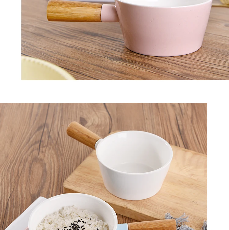 Керамическая миска, миска для ужина, миска для быстрого приготовления, миска для фруктового салата, Скандинавская миска для супа с деревянной ручкой, большая креативная чаша с ручкой, бытовая