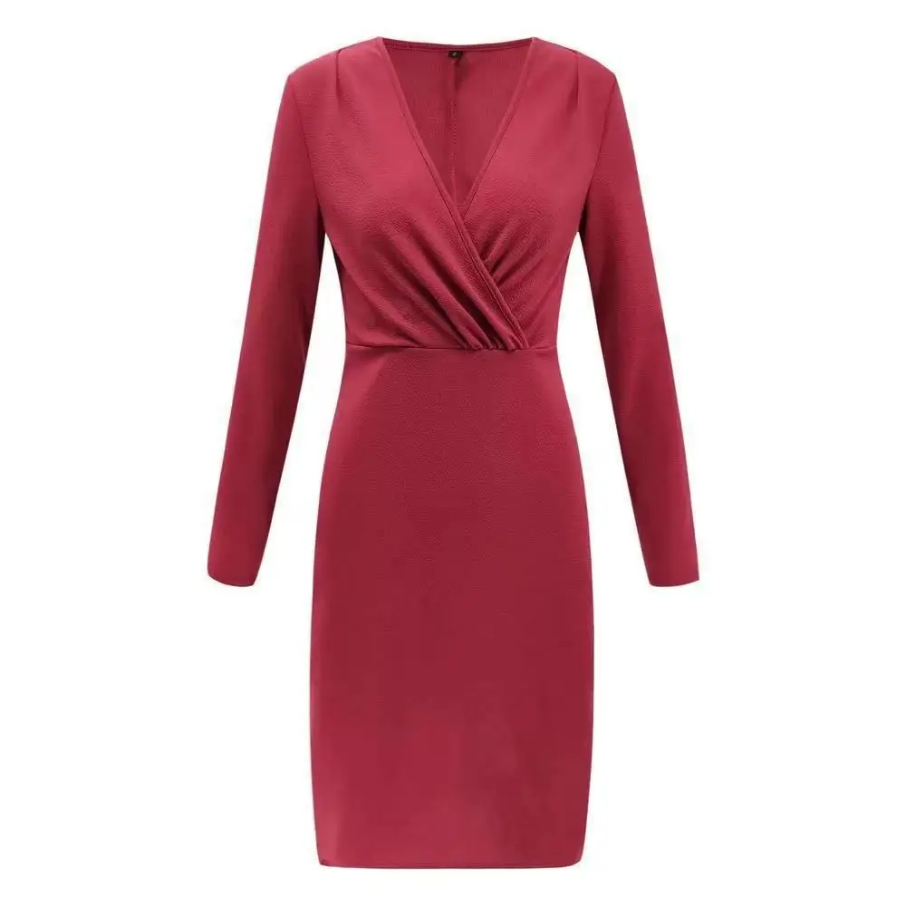 Luzuzi для женщин в винтажном стиле, обтягивающее, узкое, вечерние платья с длинным рукавом, глубокий v-образный вырез на шее, сексуальный однотонная повседневная обувь элегантное платье 2019 зима модное платье