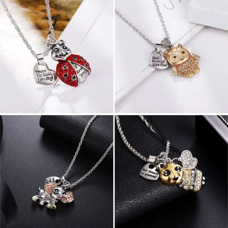 Ожерелье с подвеской в виде слона, пчелы, совы, божьей коровки, для женщин, сердце, CZ, счастливые животные, никогда не забывайте, что я люблю тебя, ожерелье с подвеской