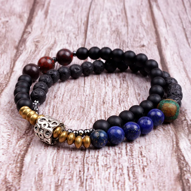 Название: браслет из натурального камня Размер бусин: 6 мм-8 мм Материал бусин: лава, лазурит, медь Пол: унисекс (для мужчин и женщин)
