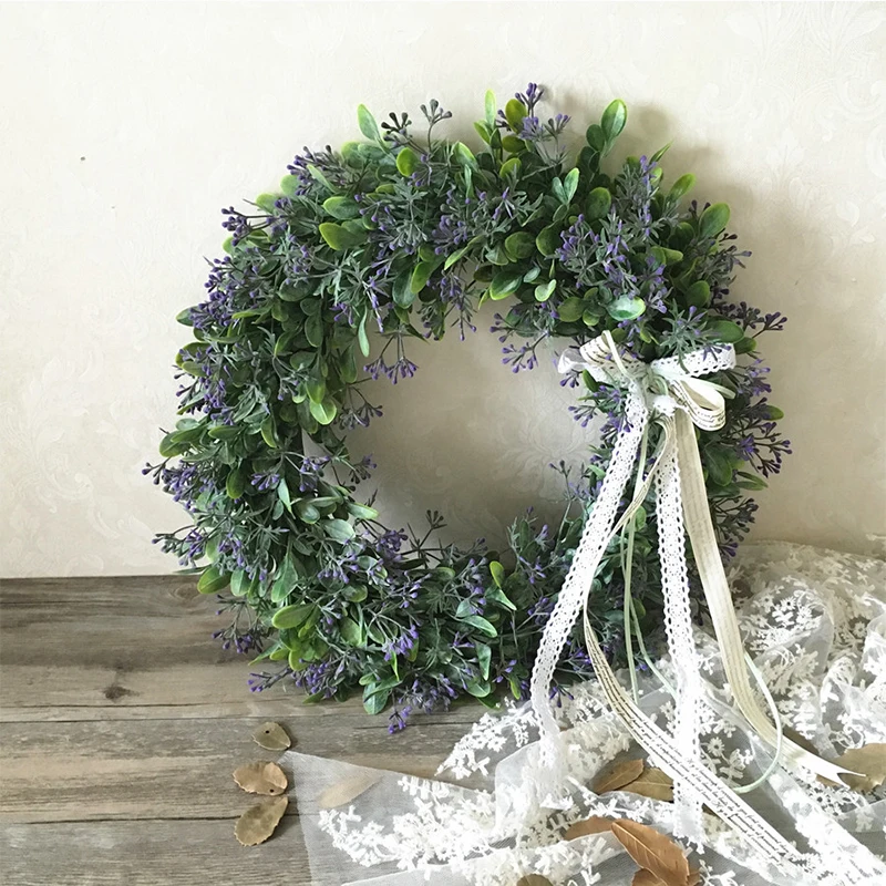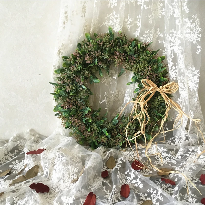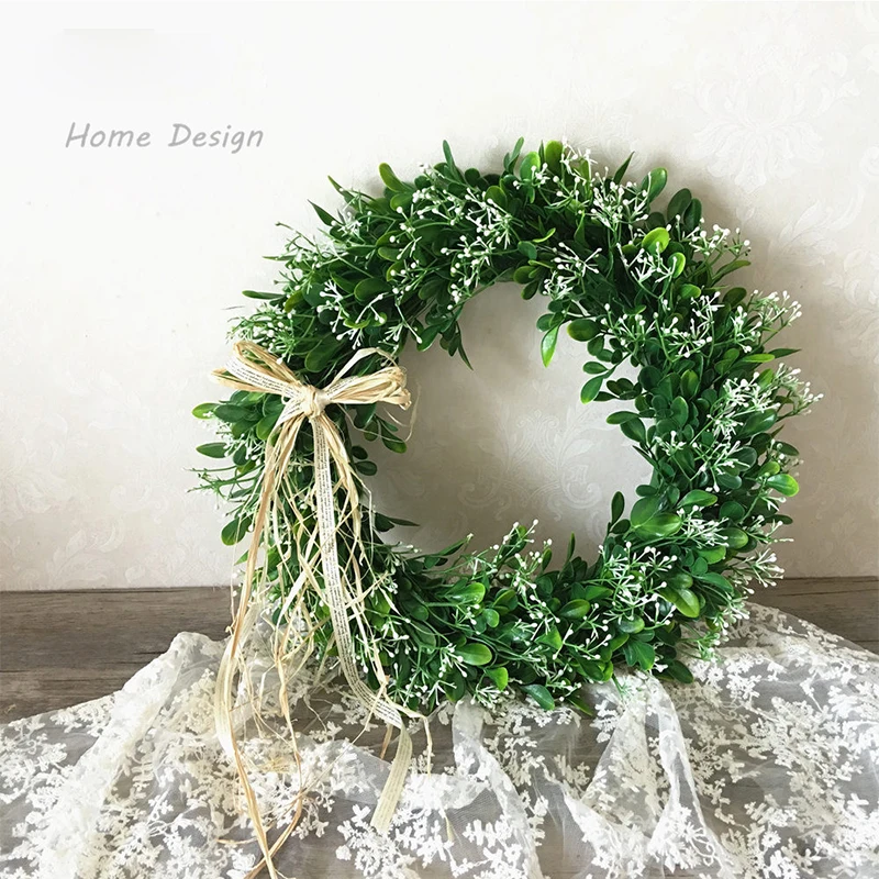 Искусственные зеленые листья венок 40 см Передняя дверь венок раковина трава Boxwood венок для окна стены вечерние украшения 35