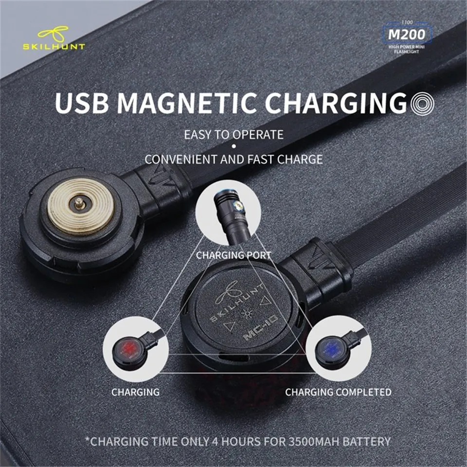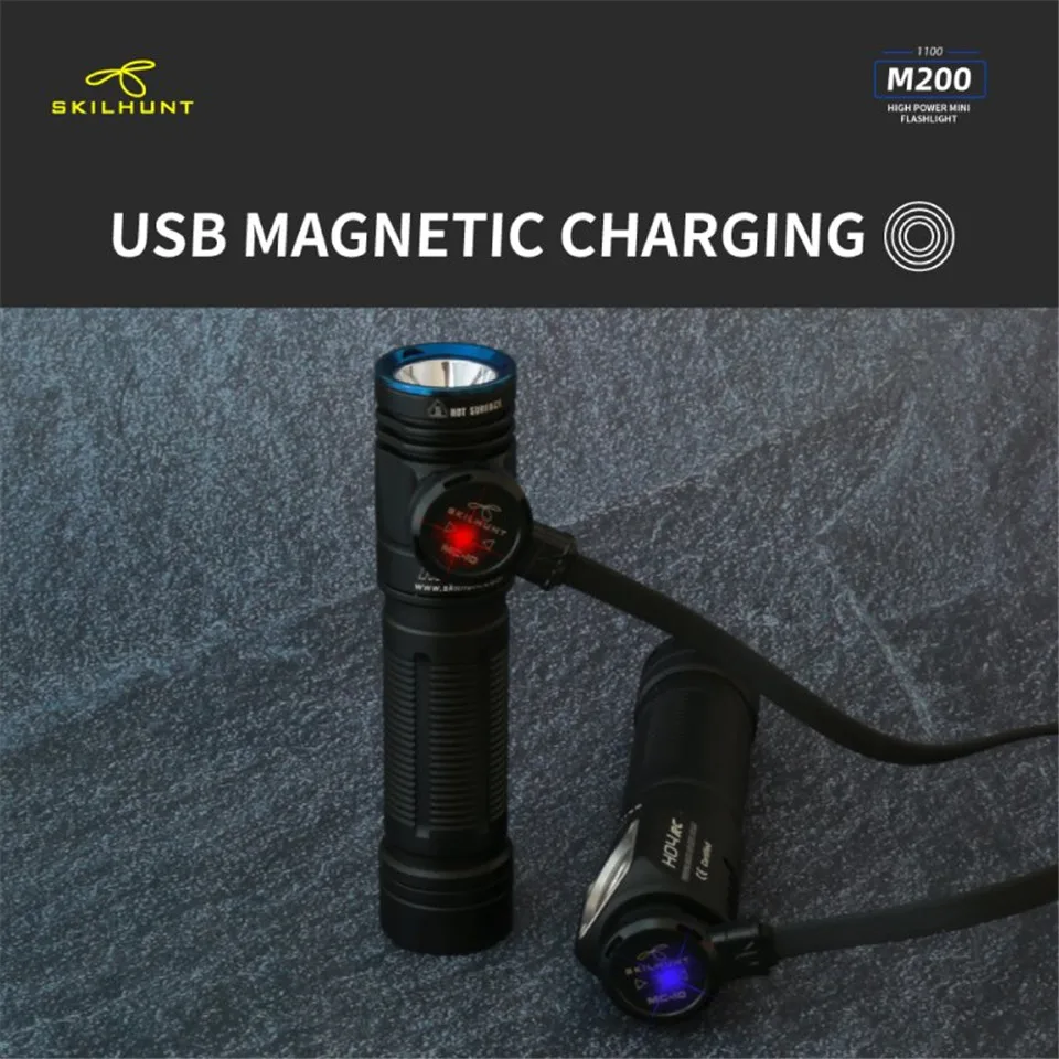 Skilhunt M200 Магнит USB Перезаряжаемые фонарик для ежедневного использования XPL Cree светодиодный 18650 высокое Мощность фонарь Фонари с Батарея Напряжение индикатор
