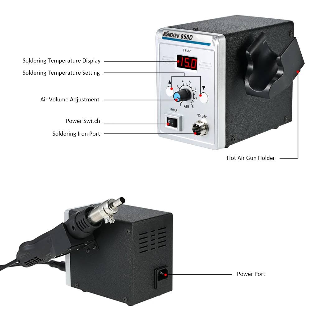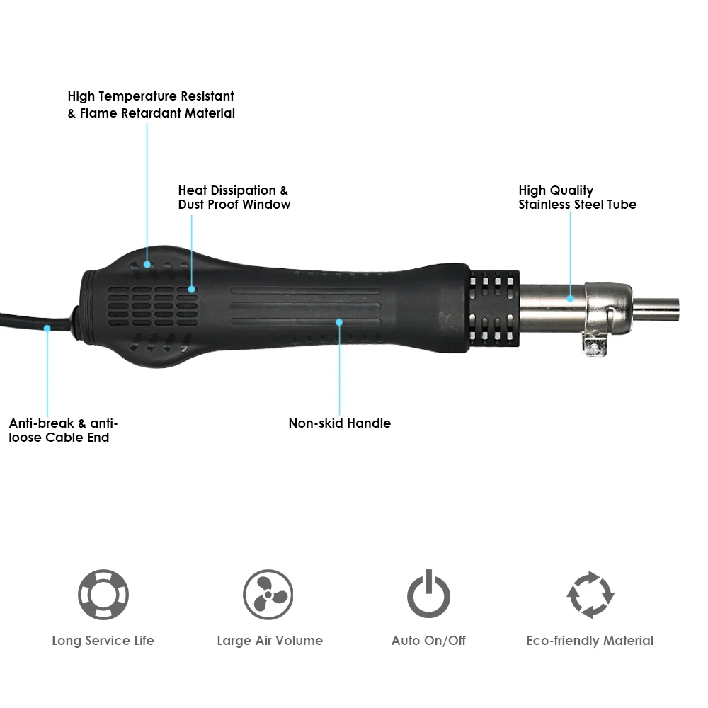 Эта высококачественная паяльная станция небольшого размера идеально подходит для пайки, демонтажа и обслуживания телефона. Это быстрый нагрев, и он может начать работать через минуту.