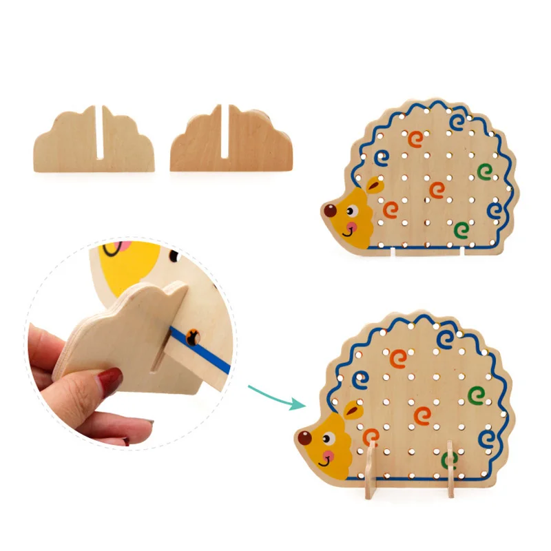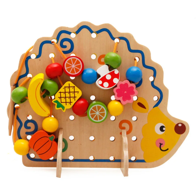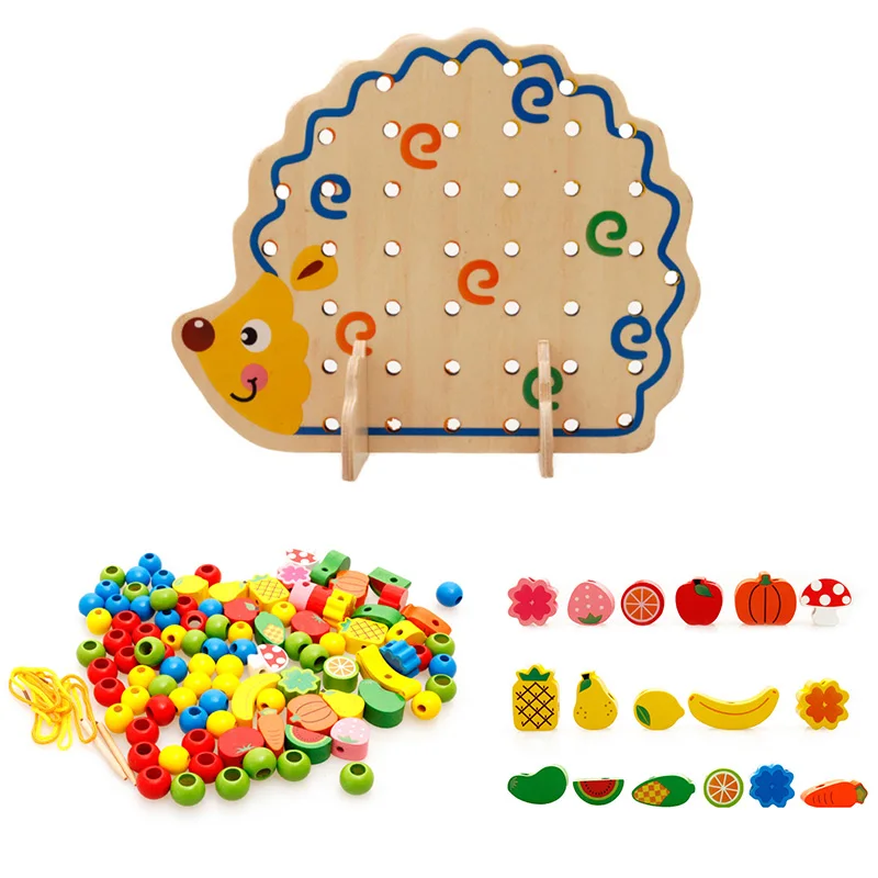 Монтессори Развивающие деревянные игрушки фрукты овощи плетеные бусы игрушка с ежиком доска раннего обучения игрушки для детей