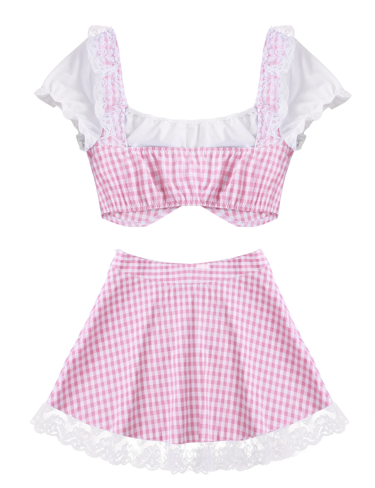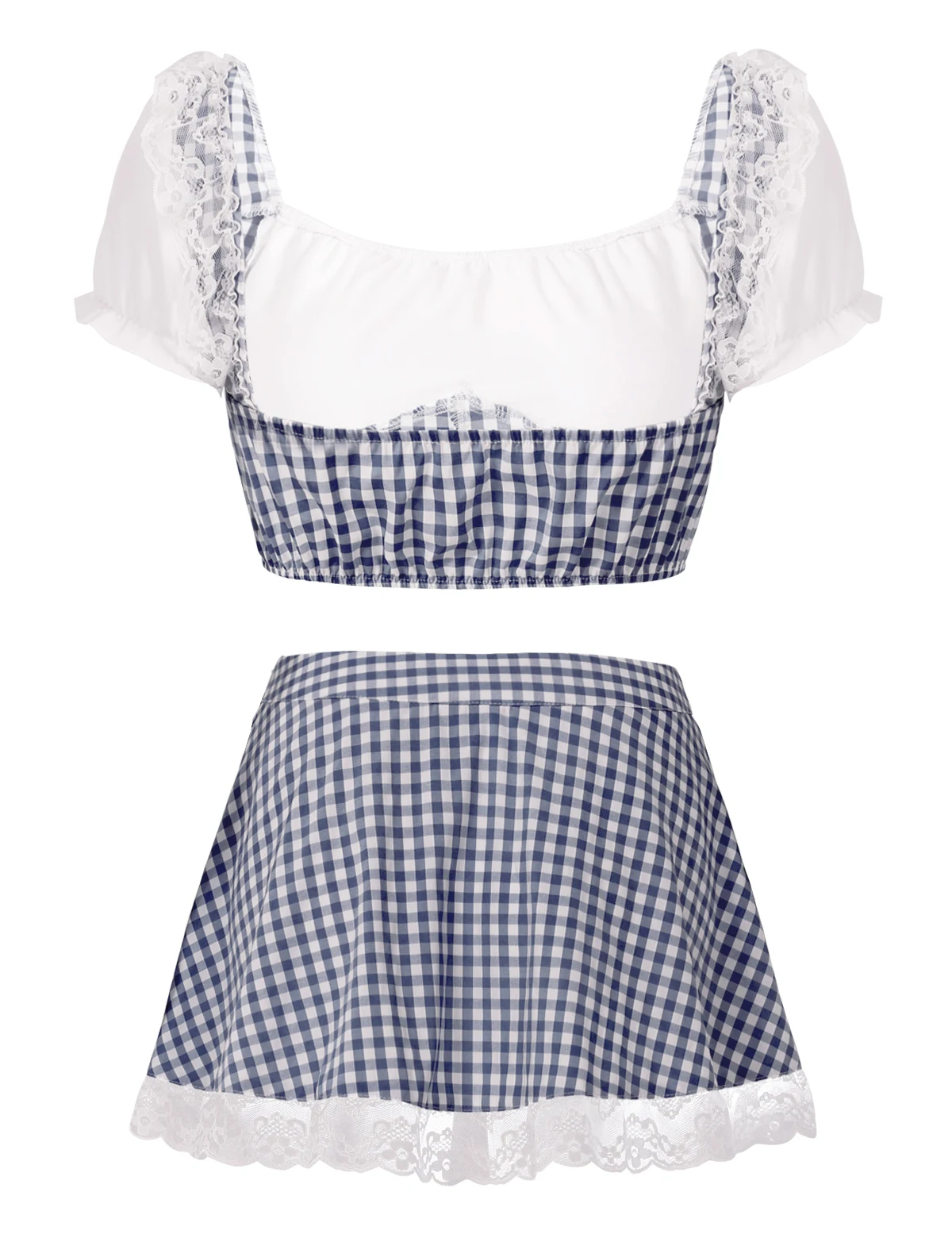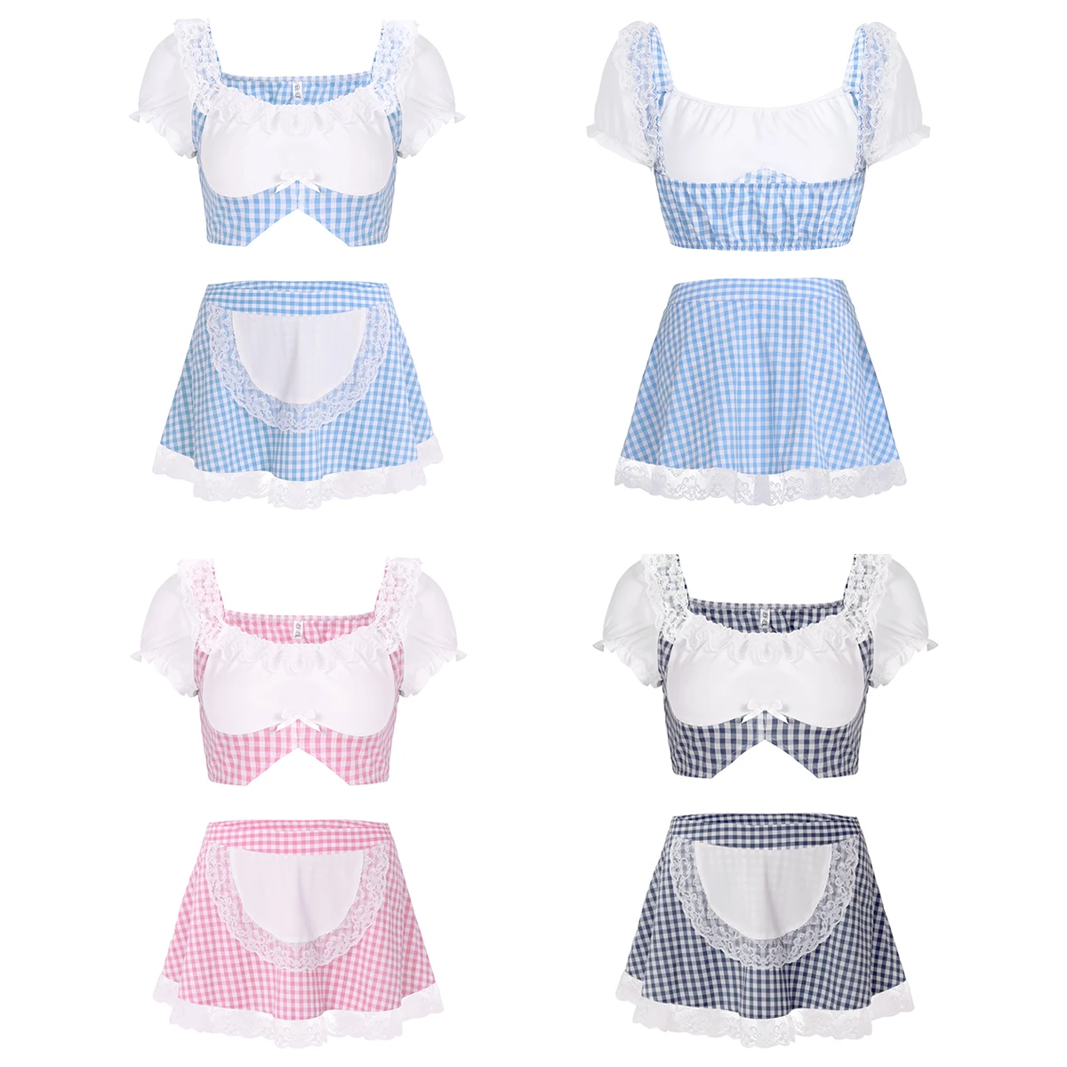 Квадратный вырез с кружевным подолом, короткие пышные рукава и белые Обрезанные Топы на груди, спинка с эластичной резинкой для удобной посадки.