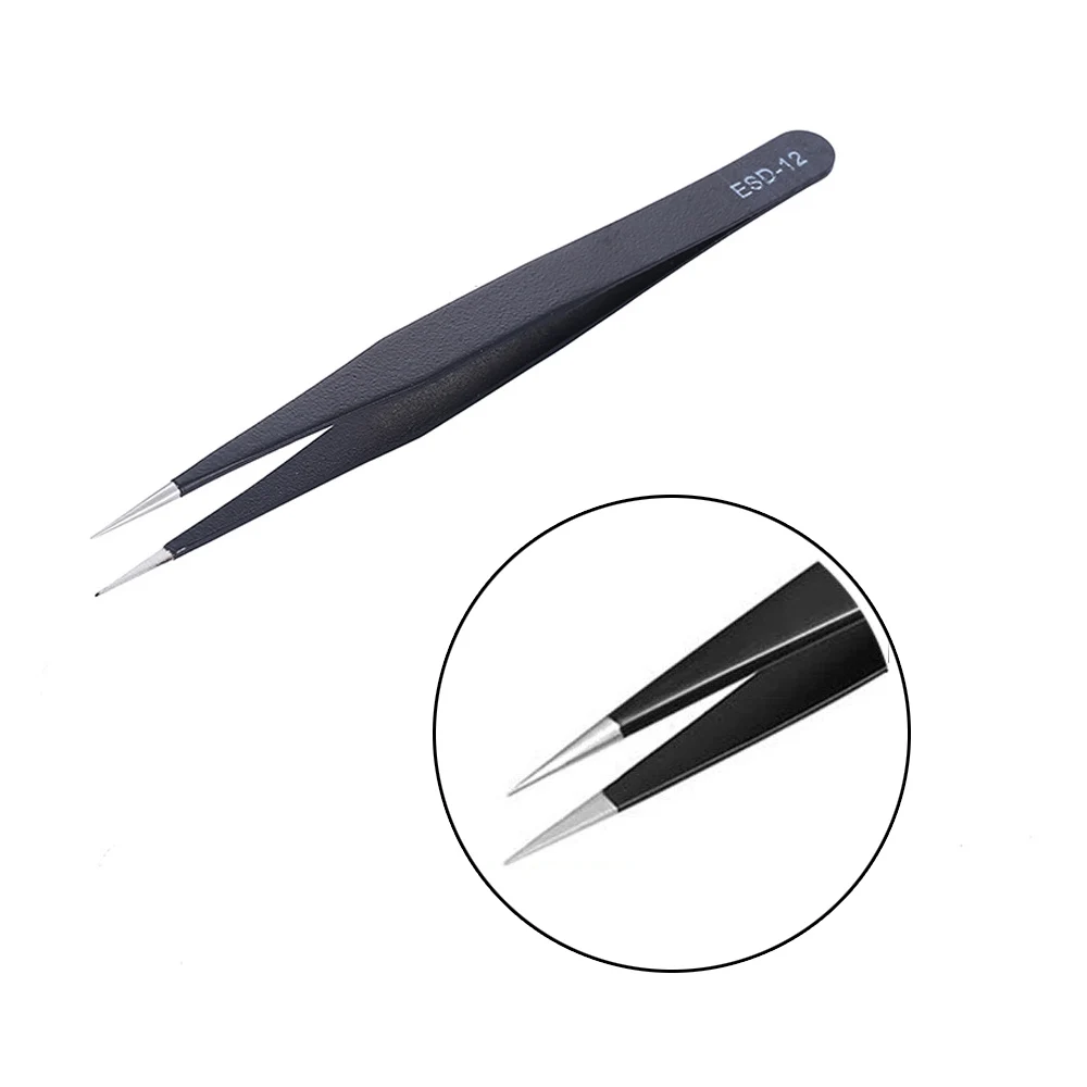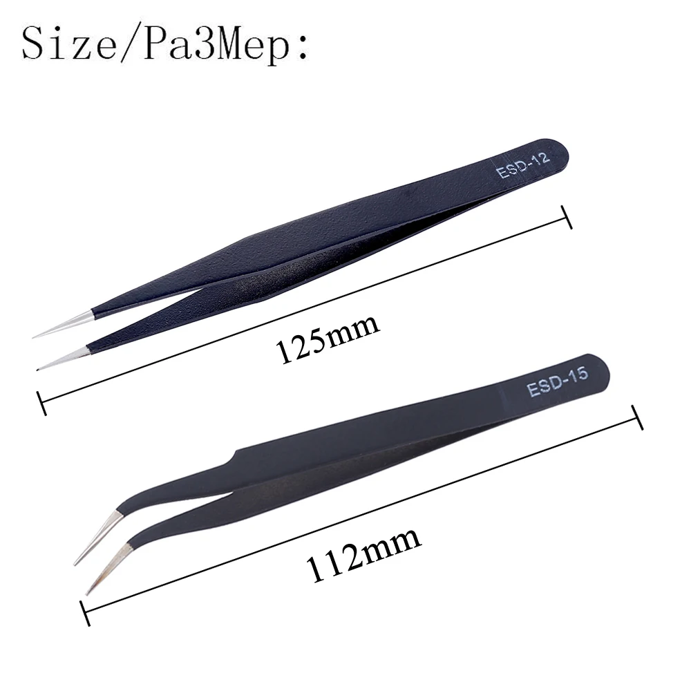 + Наконечник пинцета имеет высокую твердость, эти пинцеты с антистатической поверхностью для защиты компонентов и ручек от повреждения статического эффекта