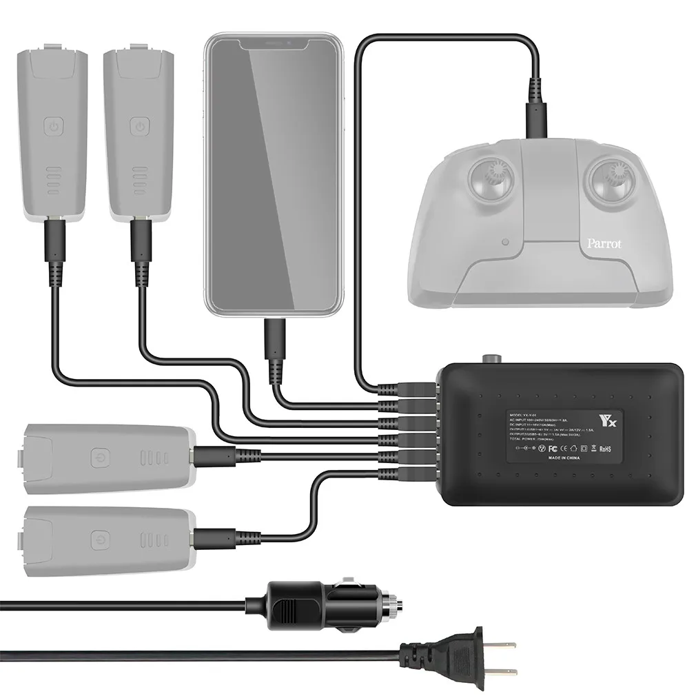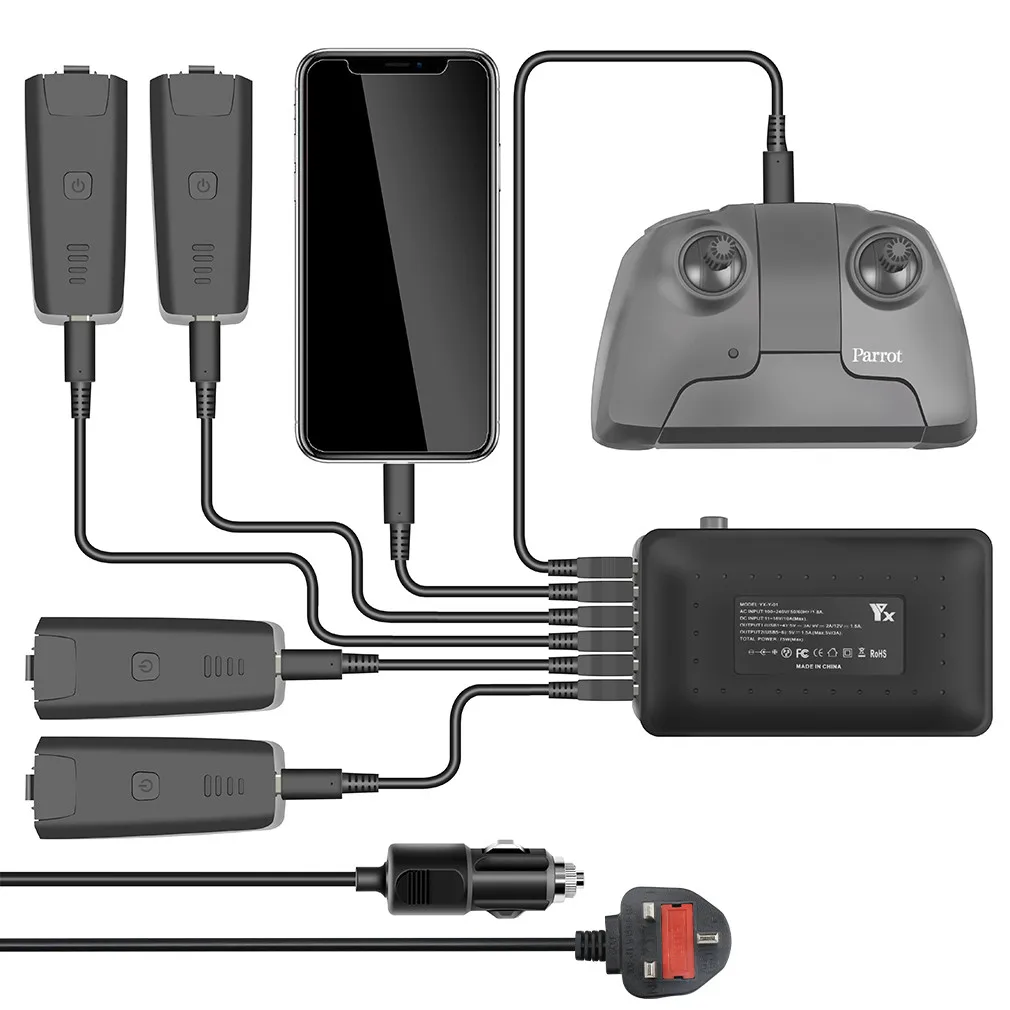 6-в-1 Для Зарядное устройство Parrot ANAFI Drone, мульти-батареи, балансирующее быстрое зарядное устройство, адаптер и автомобильное зарядное устройство