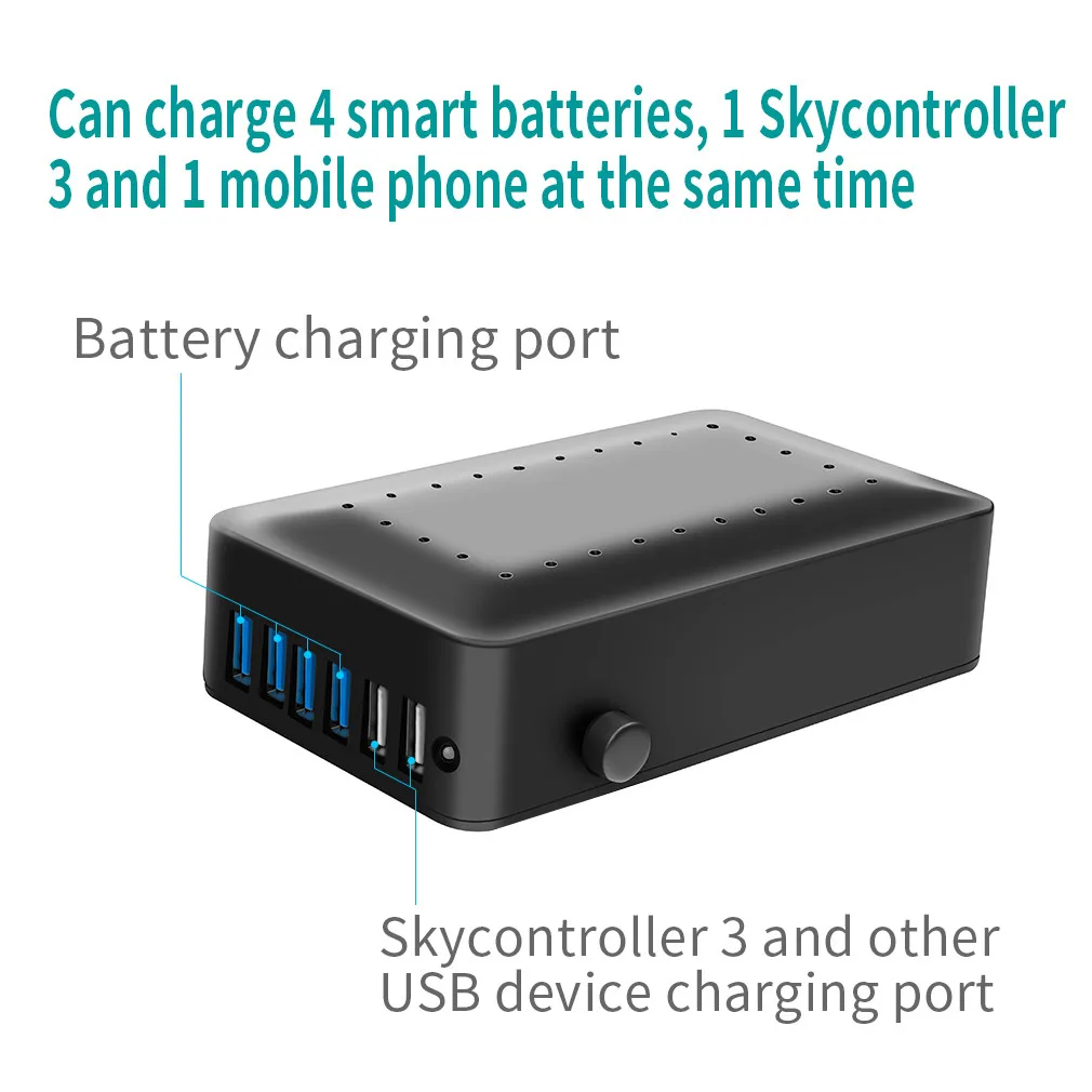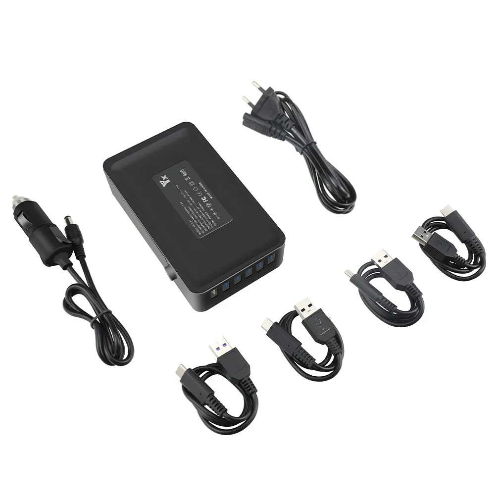 6 В 1 можно заряжать как внутри, так и внутри автомобиля (4 умных аккумулятора, 1 Контроллер, 1 мобильный телефон одновременно) Можно заряжать портативным зарядным устройством три ANAFI батарейки в одно и то же время Время зарядки: оно Занимает около 70 минут, чтобы заполнять 3 батареи Переменного тока Входное напряжение: 100-240V 50/60Hz 1.8A Постоянного тока Вход: 11-16 В/10 А OUTPUT1 (USB1-4): каждая ветка 5 В, 3 а/9 В, 2 а/12 В, 1,5 А OUTPUT2 (USB5-6): 2 розетки, всего 5 В, 3 А (штекер одного устройства-5 В, 3 А, штекер 2 Устройства 5 В 1,5 А, соответственно) В общей сложности Мощность: 75 Вт (макс.) Для того, чтобы Заряжайте батарею ANAFI, пожалуйста, используйте для этого устройство с помощью USB1-4 Заполнены С 1-4 батареями около 100 минут одновременно ВремяБаланс Напряжения, предотвращения перенапряжения и уменьшения недостатка зарядки Батарея, уменьшает повреждения ячеек, защищает батареюПосылка включает в себя: