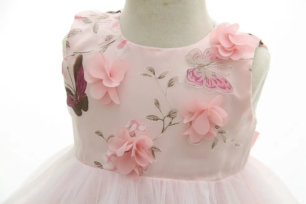 С цветочным узором для маленьких девочек вечерние и свадебные платья 2nd 1st на день рождения, платье с вышитыми бабочками для маленьких девочек на возраст 3, 6, 12, 18, 24 месяцев, карнавальный костюм, одежда