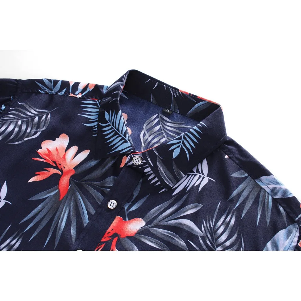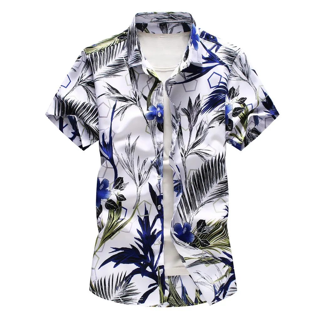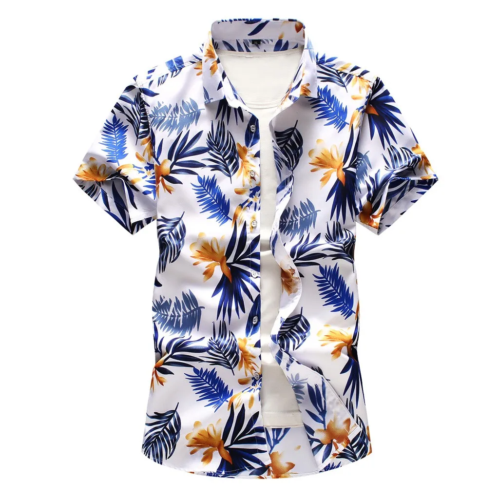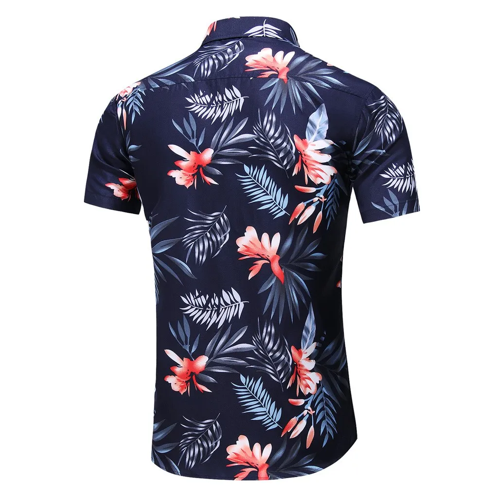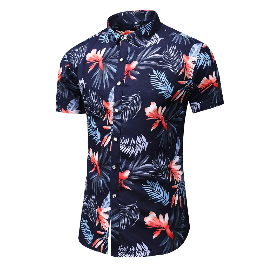 Мужская повседневная гавайская рубашка с отложным воротником и пуговицами, топ с короткими рукавами