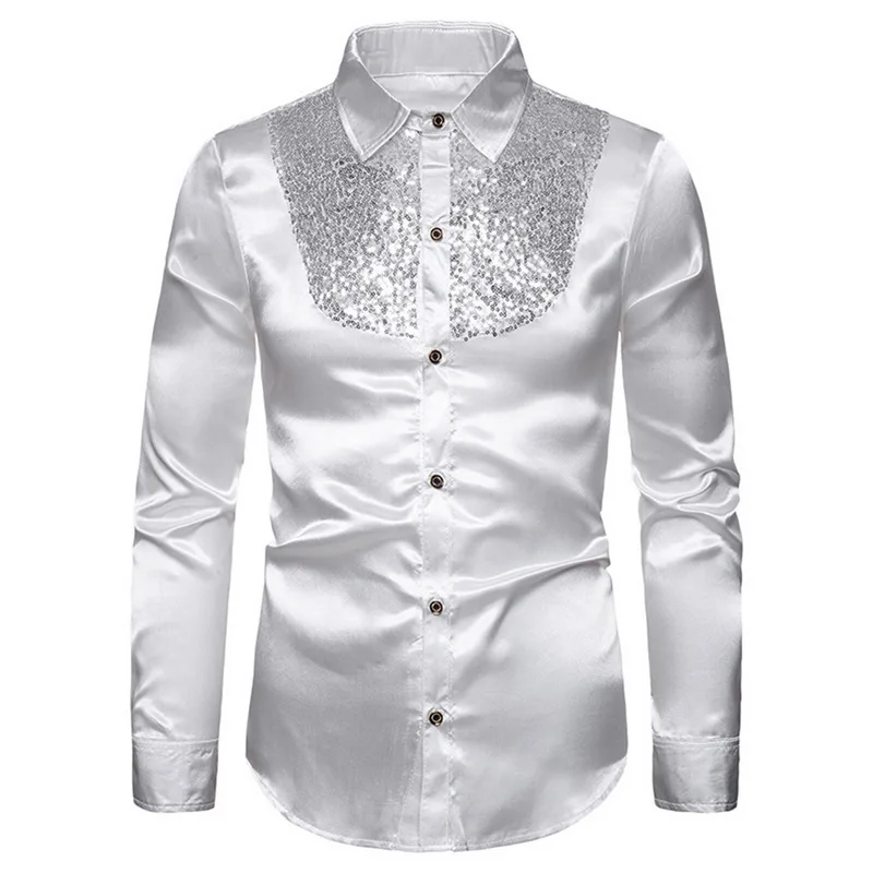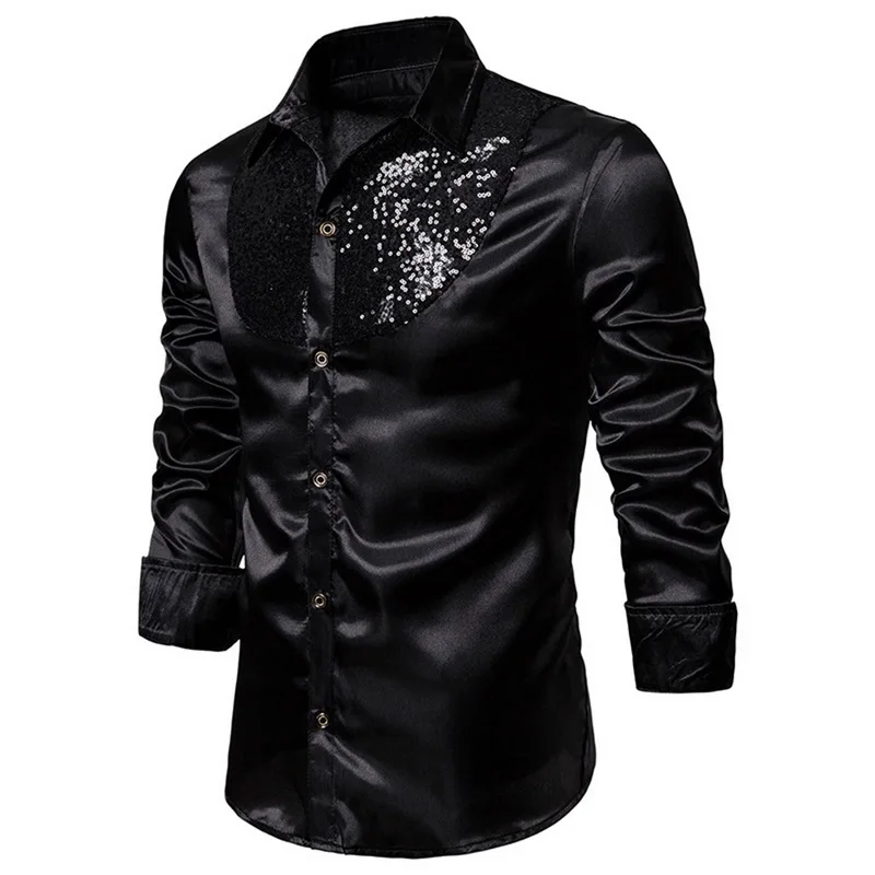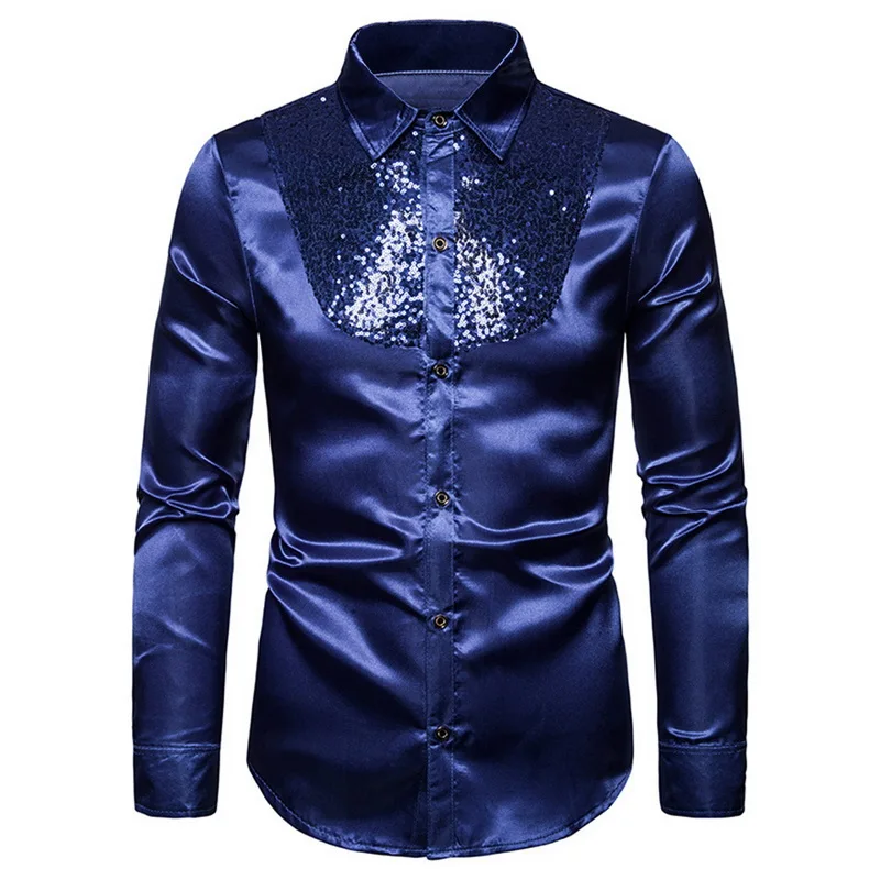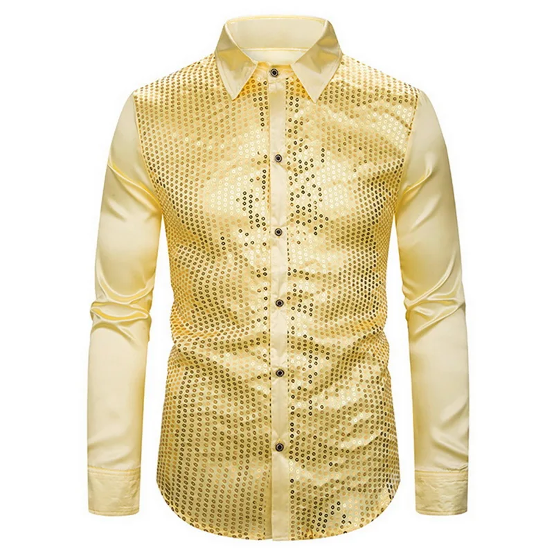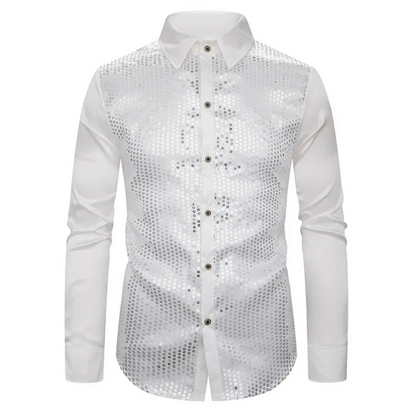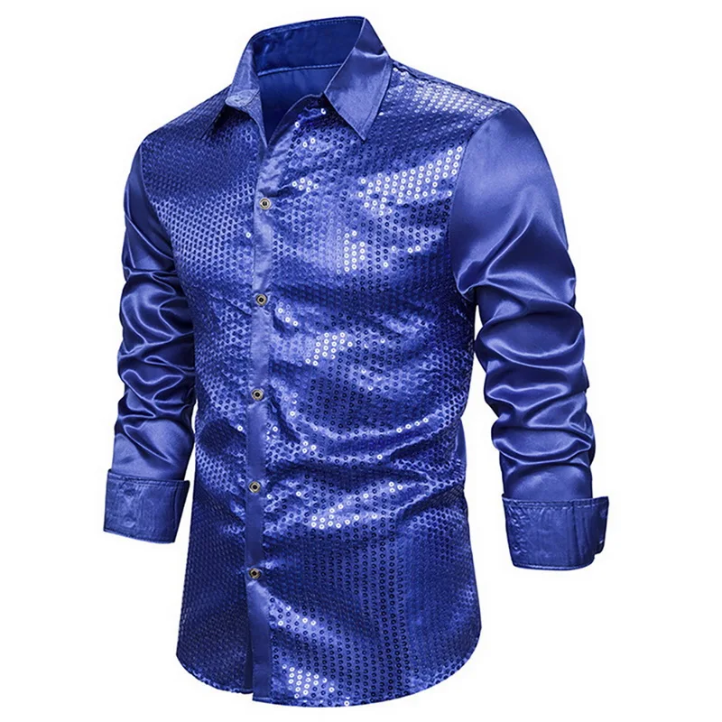 Блестящая рубашка с блестками, мужская рубашка с длинным рукавом, на пуговицах, для сцены, выпускного вечера, рубашки для мужчин, s Dance Host, рубашка для хора, Мужская сорочка, Homme