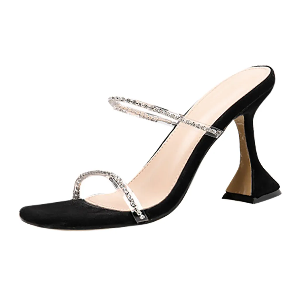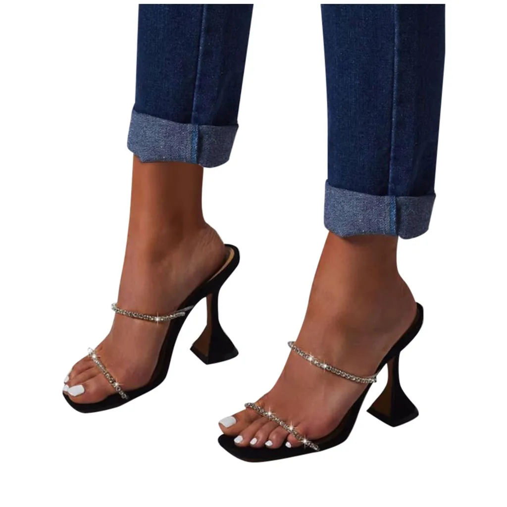 Модные женские босоножки на высоком каблуке; Летние тапочки для вечеринки со стразами; Пикантная обувь