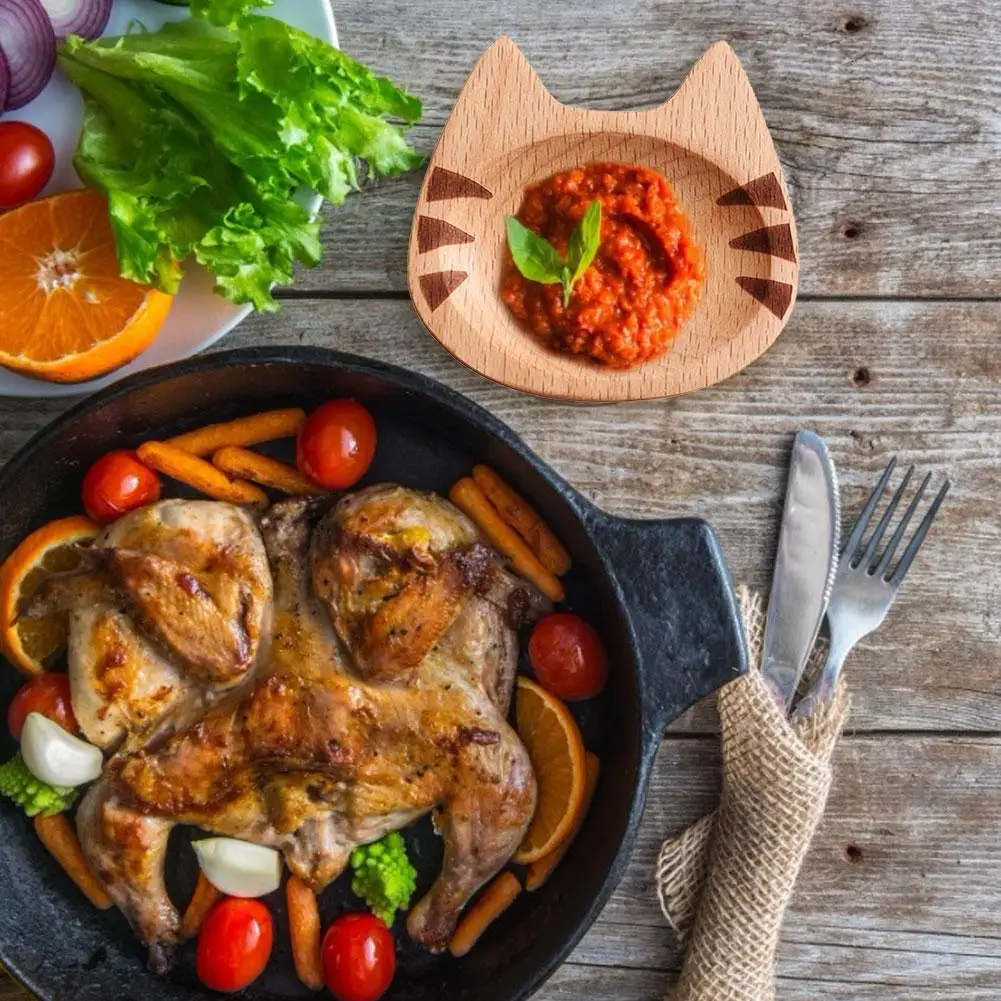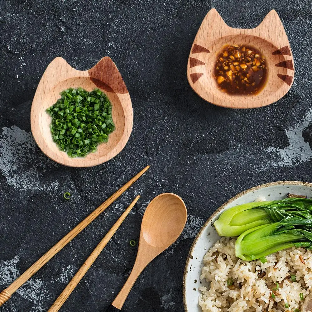 Деревянный соус пластина японский соуса кошка Форма соус чаша для домашней кухни мини ящик для хранения, кухонные принадлежности
