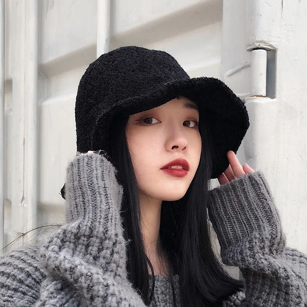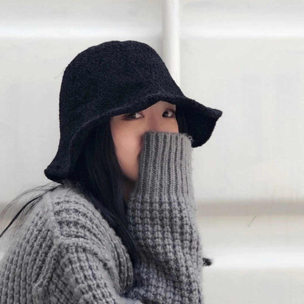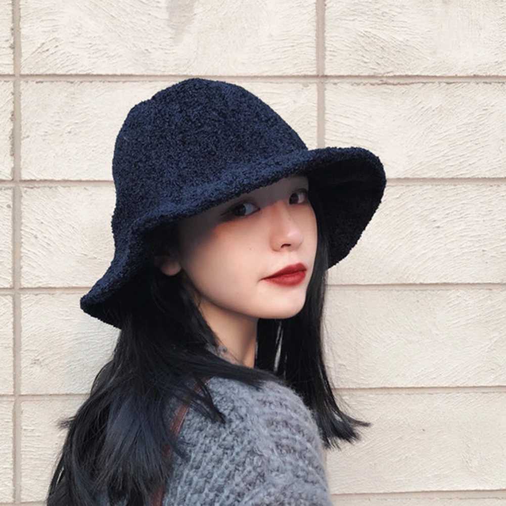 Winter Fashion Women Solid Color Wide Brim Warm Casual Woolen Bucket Hat Cap