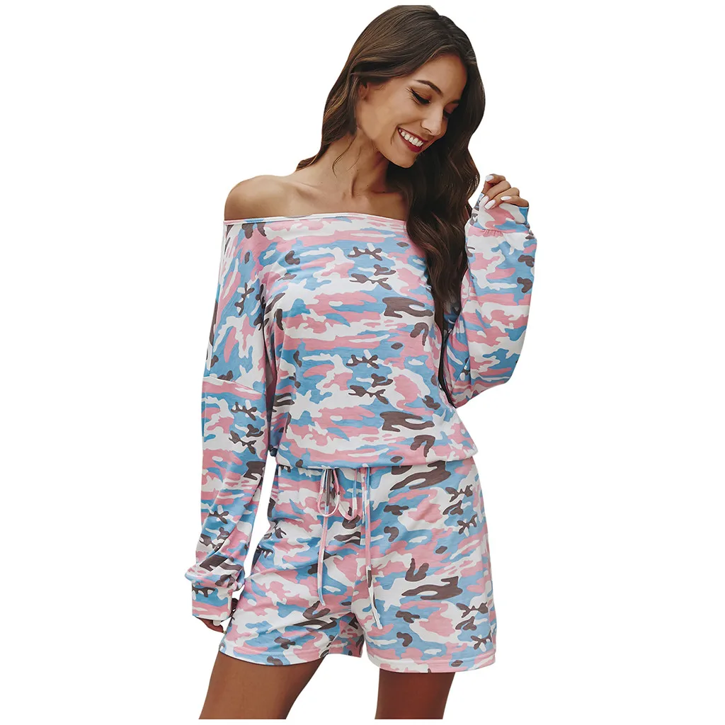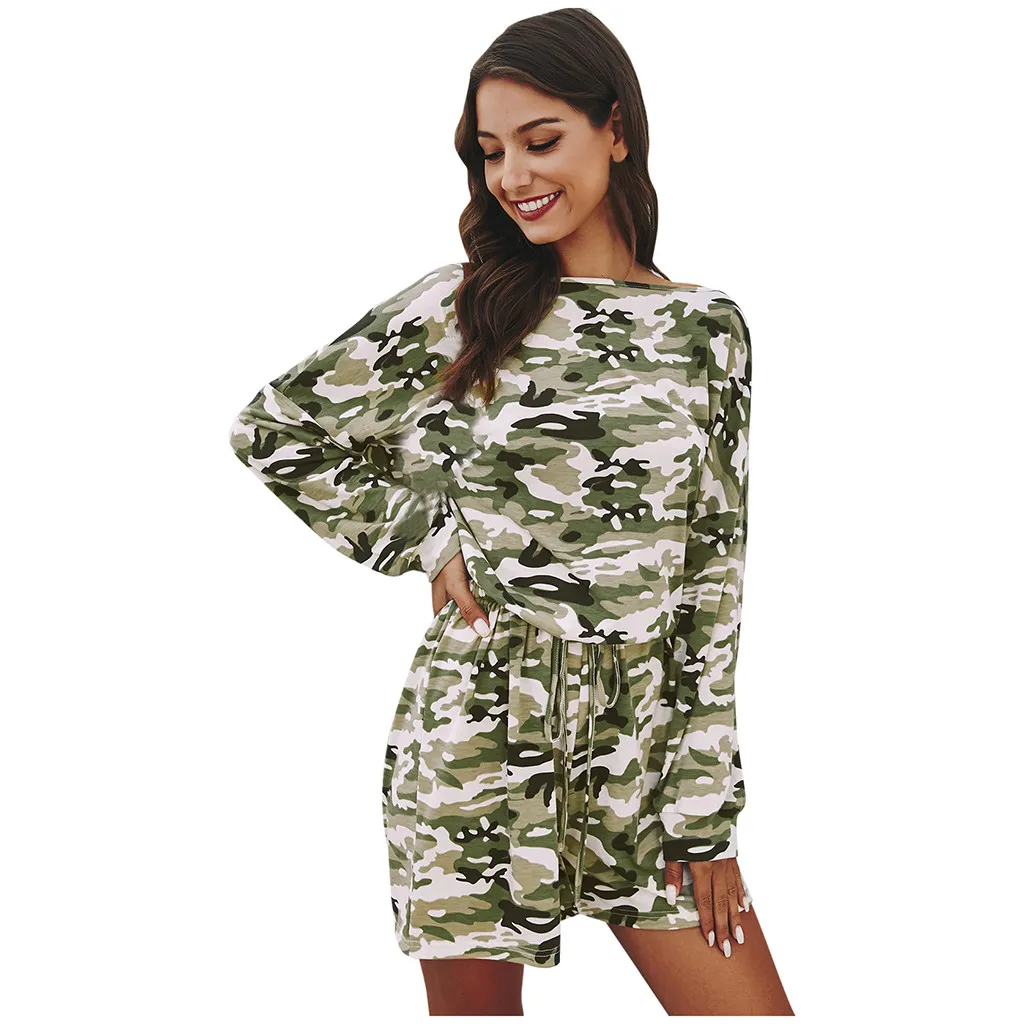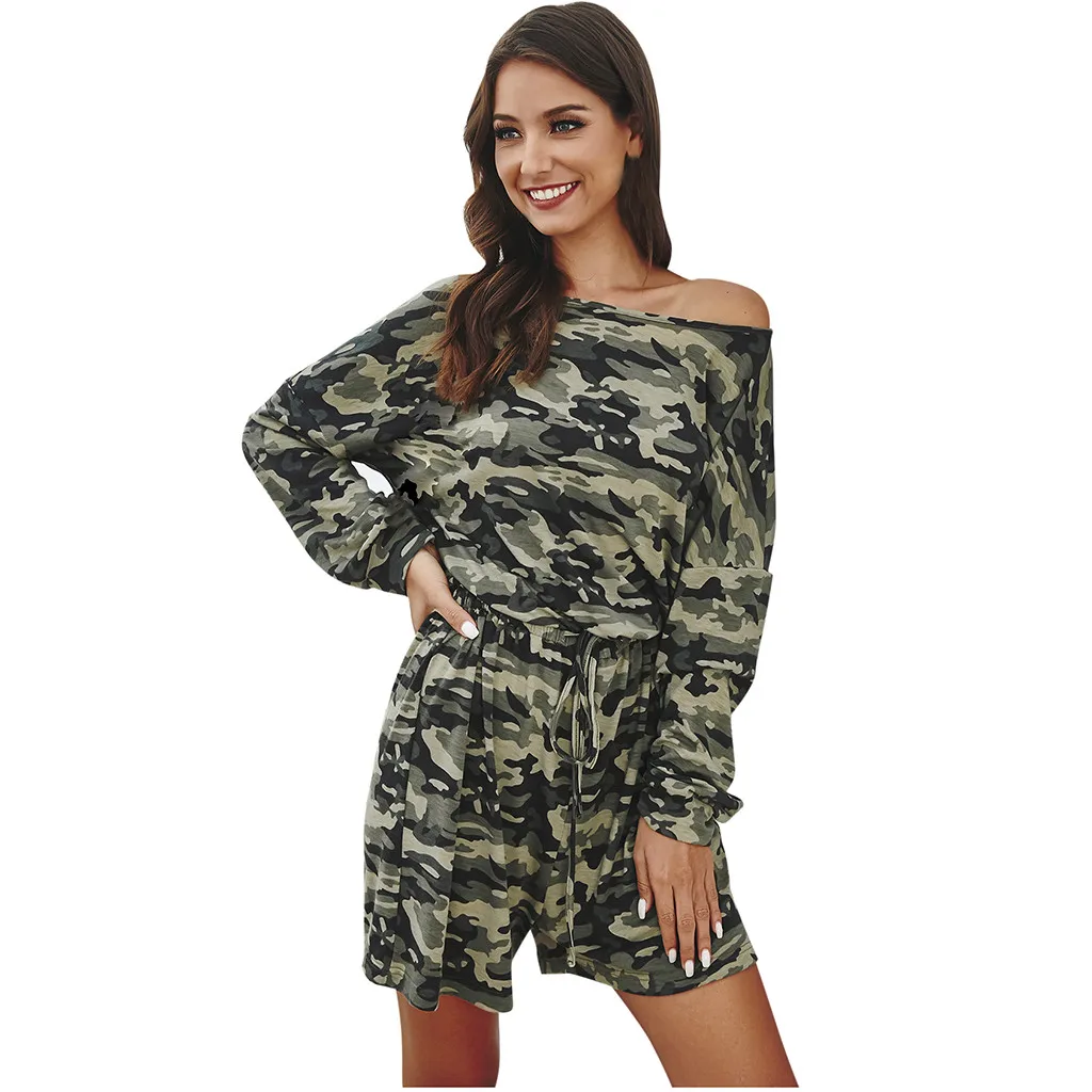 Женский Повседневный Леопардовый короткий комбинезон с длинным рукавом и круглым вырезом, женский спортивный костюм
