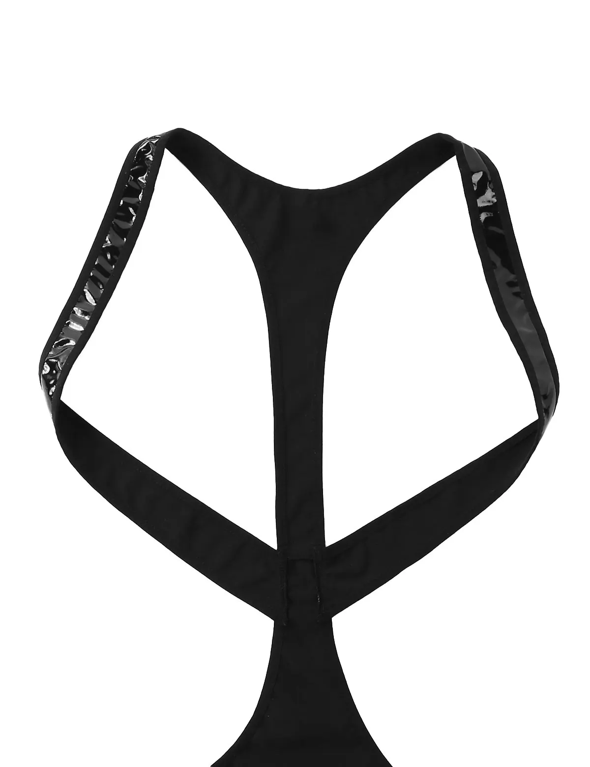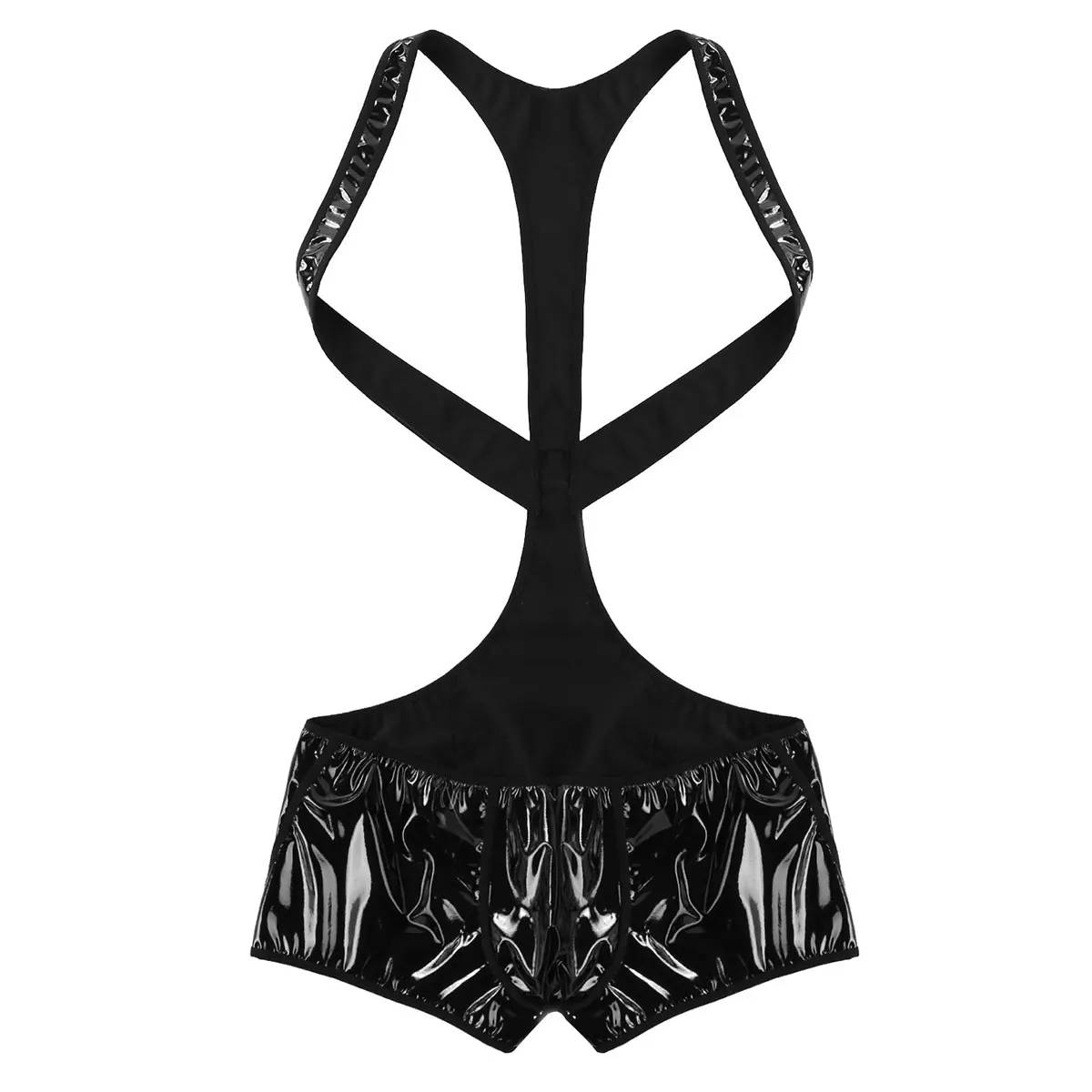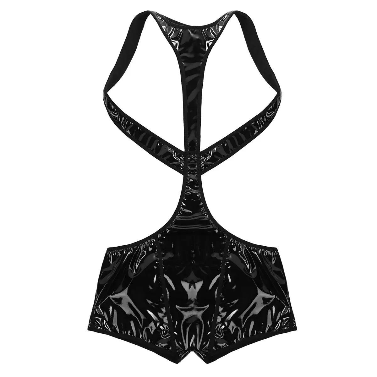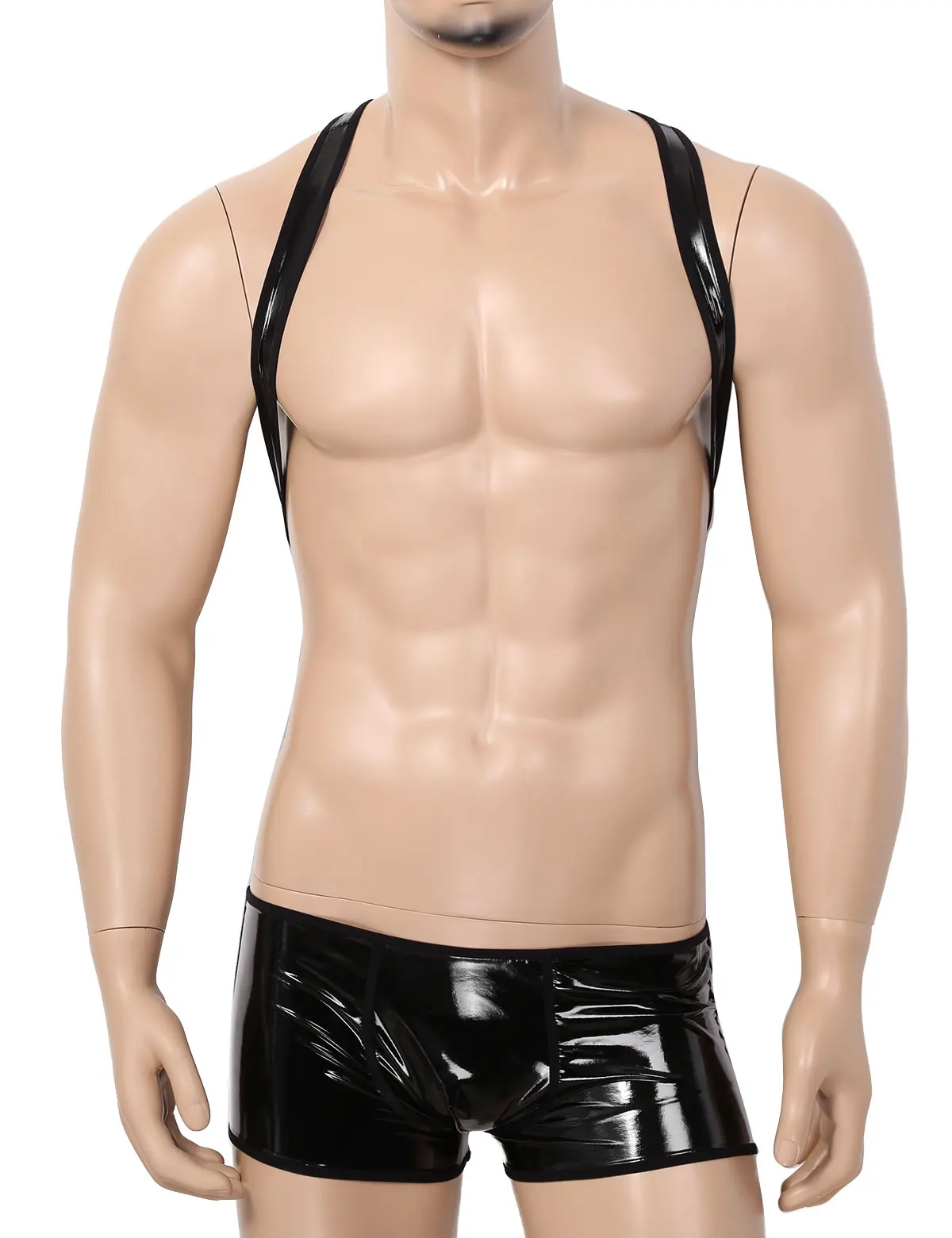 Мужское нижнее белье из лакированной кожи на подтяжках, комбинезон, спортивный костюм.