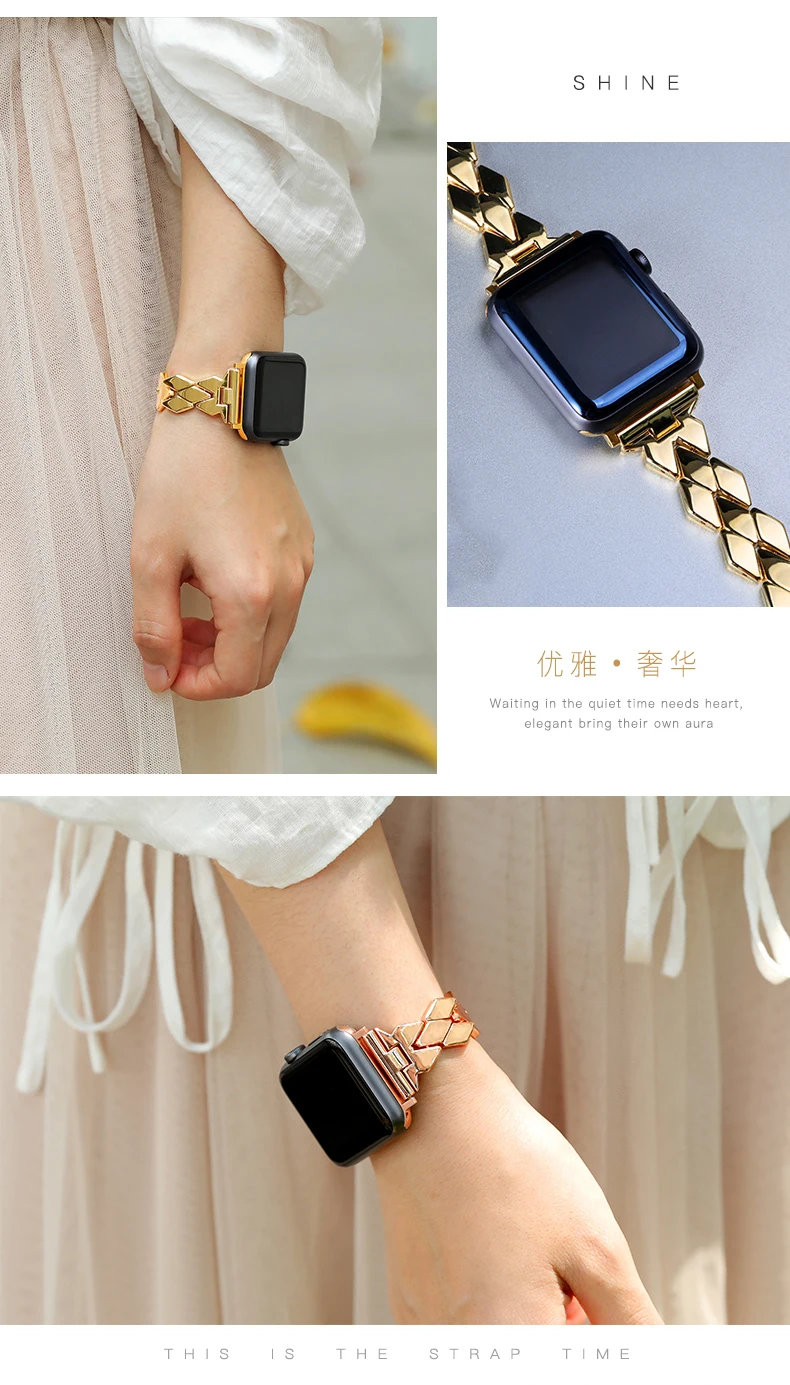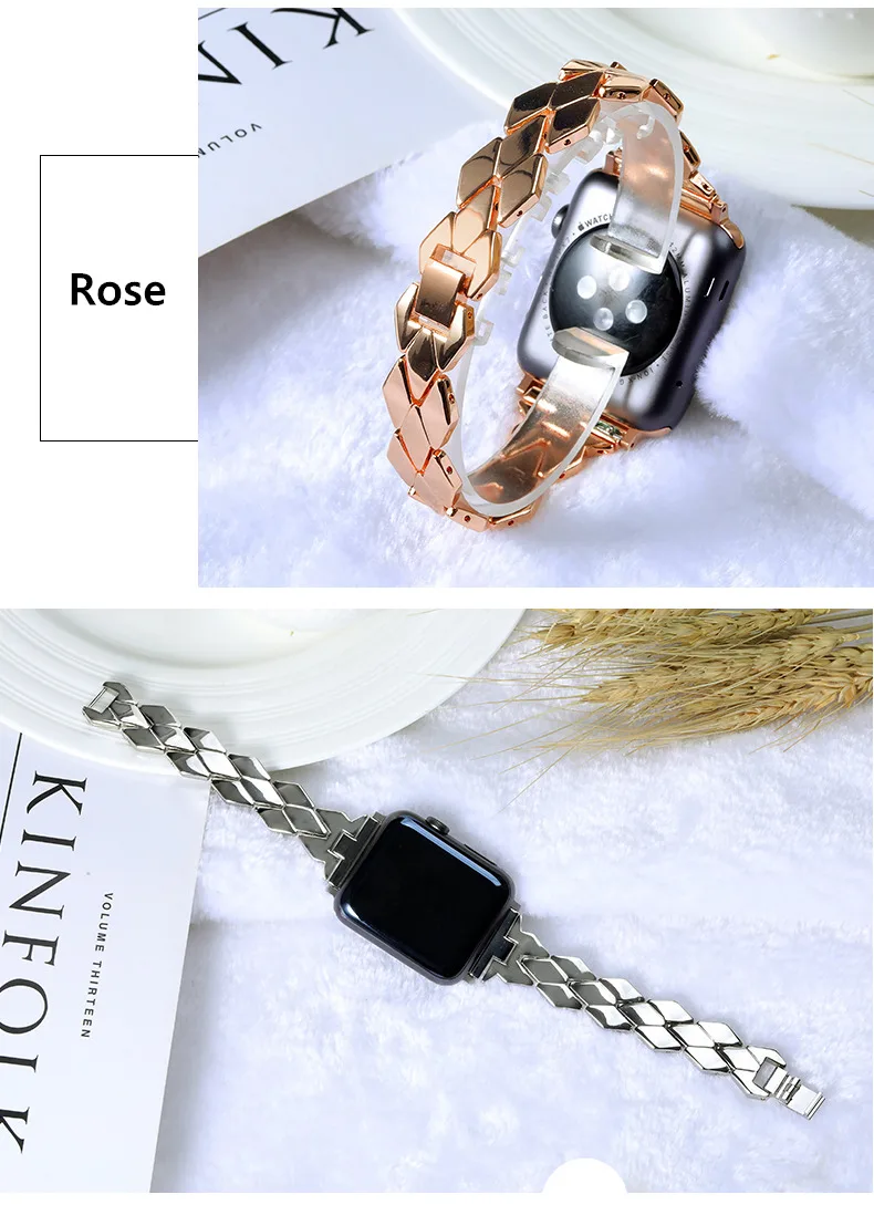 Ремешок из нержавеющей стали для Apple Watch 38 мм 42 мм iWatch 4 полосы 44 мм 40 мм Ромбический металлический браслет для Apple watch 5 4 3 38