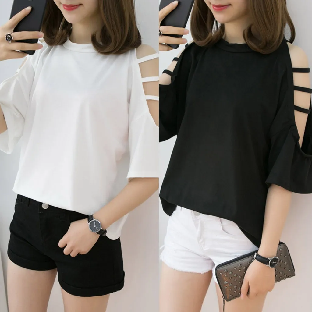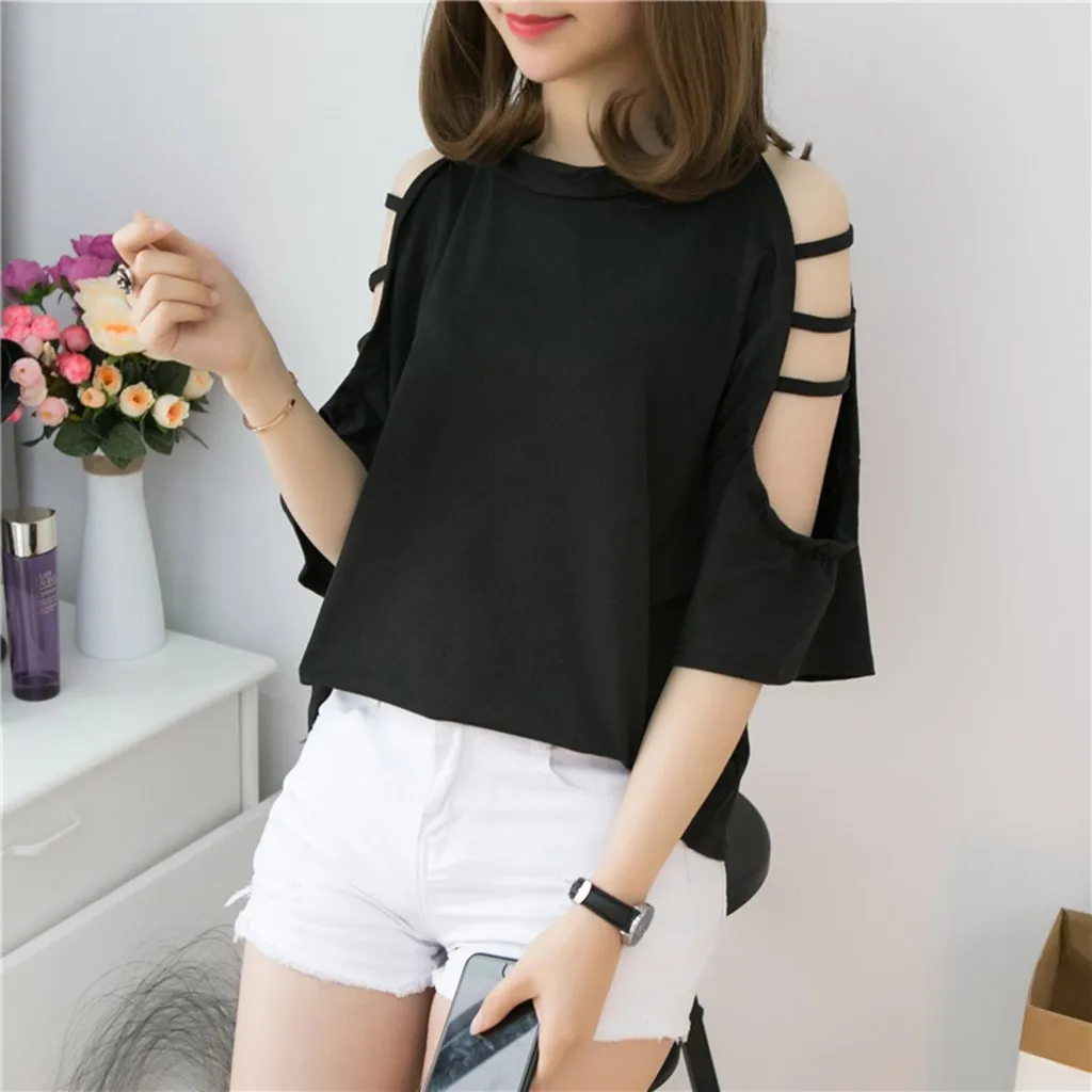Women's O-Neck Pure Colour Off Shoulder Shirt Half Sleeve Summer Blouse