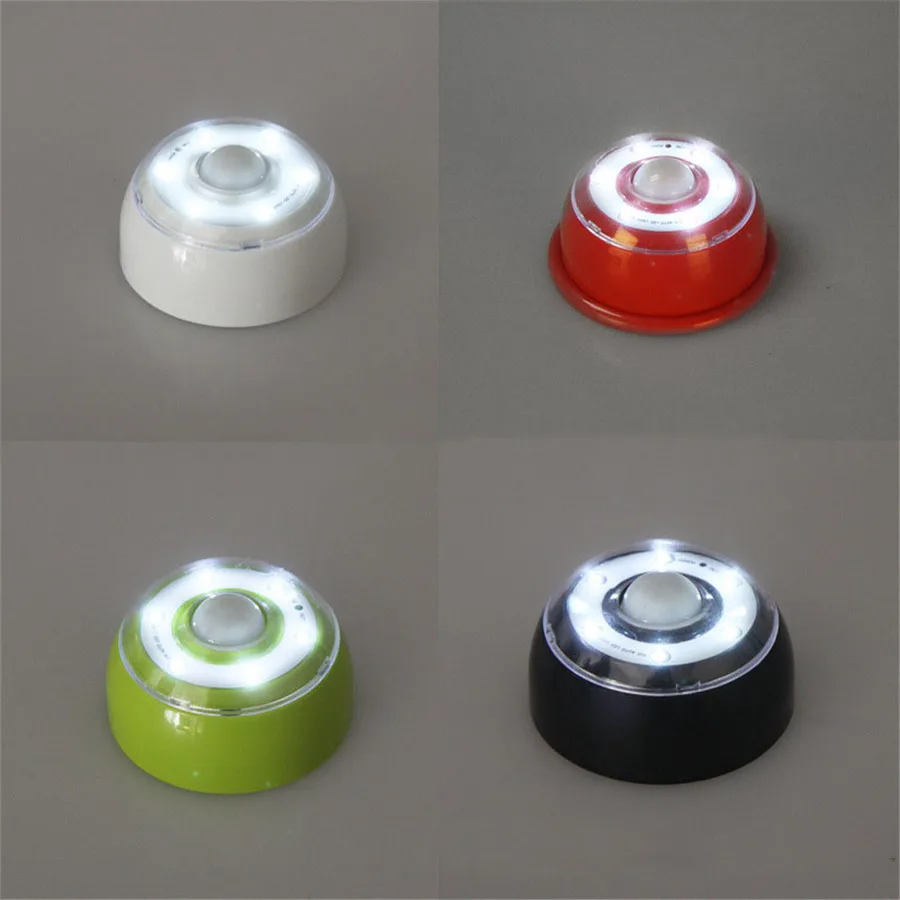 Новый светодиодный светильник Рабочее напряжение: DC4.5V Способ управления: датчик движения PIR Размер: 85*85*50 мм Материал: АБС + ПП Цветовая температура: белый Цвет корпуса: зеленый или красный или синий или белый или черный или серебристый Светильник режим: темный или яркий Источник питания: 4 батарейки AAA (не входят в комплект) Посылка: 1 шт. светодиодный ночник