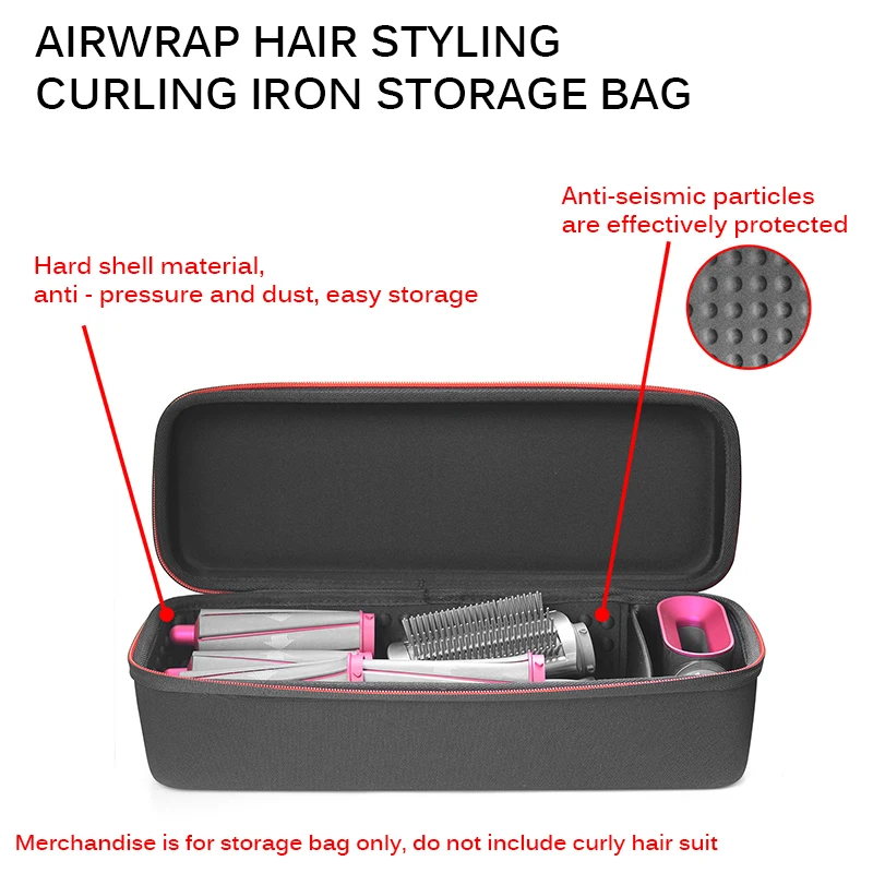 Коробка airwrap может держать все аксессуары airwrap вместе с запечатанной молнией. Кроме того, ручка для переноски удобна для переноски всех аксессуаров airwrap, идеально подходит для путешествий.