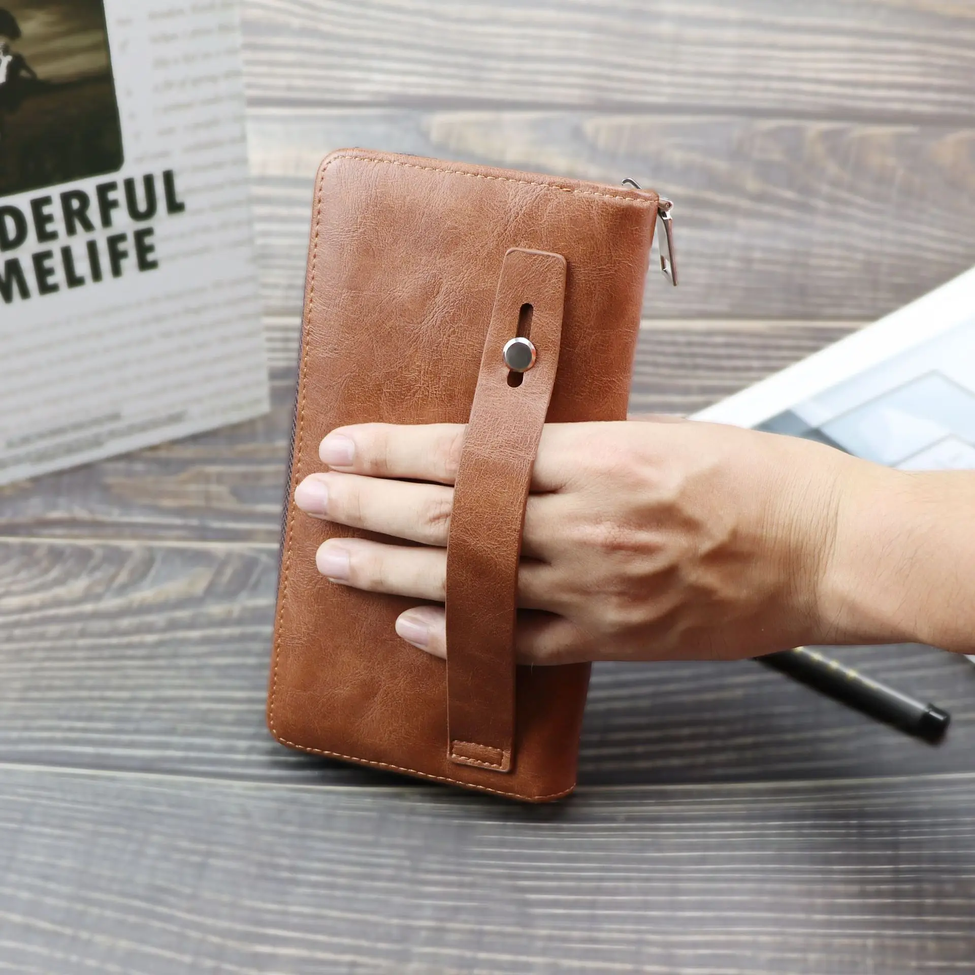 Длинный мужской кошелек на молнии, кошелек для мужчин, портмоне, клатч, мужские кошельки, Длинный кошелек, два сложения, женские кошельки, кожаный замшевый кошелек на молнии для девушек