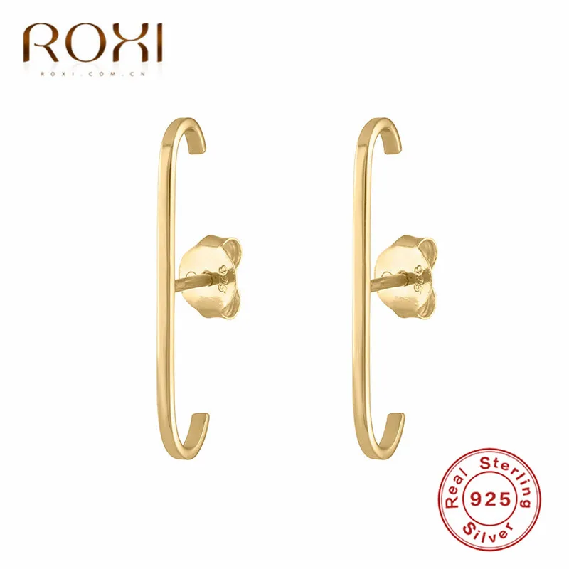 ROXI 925 Sterling Silver Simple Geometric Stud Earrings for Women Elegant Wedding Handmade Jewelry Accessories Party Brincos