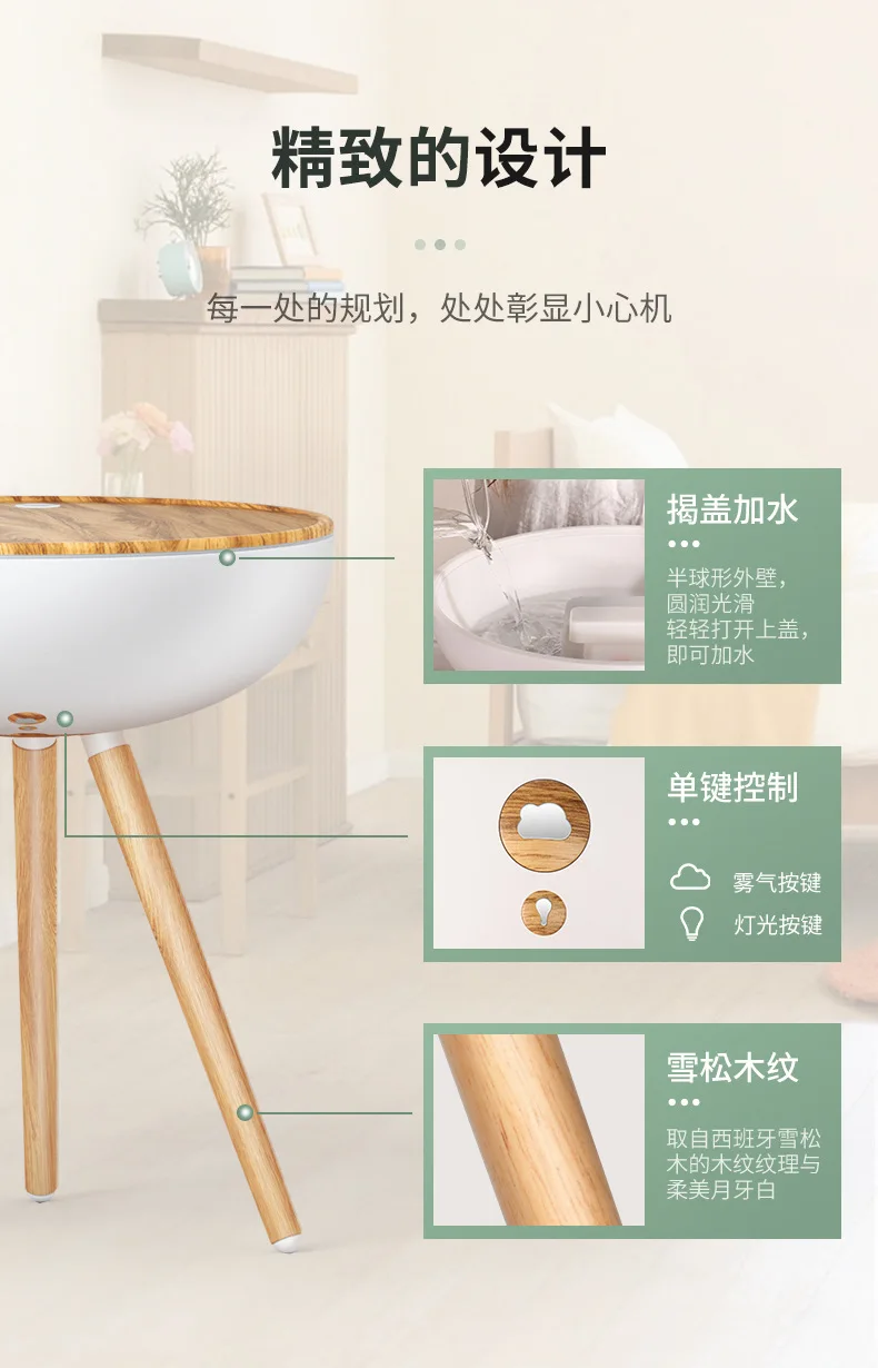 1. Слегка Откройте верхнюю крышку, добавьте воды 2. Управление одним касанием 3. Зерно кедрового дерева