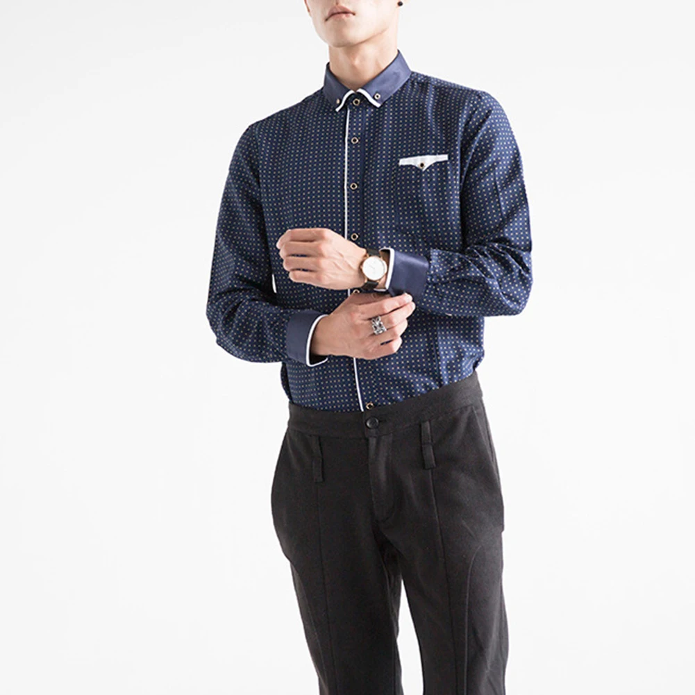 Мужская деловая рубашка с отложным воротником и пуговицами, модная Повседневная рубашка с длинными рукавами и принтом, стройнящая и подходящая мужская деловая рубашка, брендовая мужская одежда большого размера, мягкая и удобная одежда