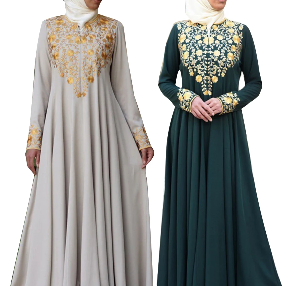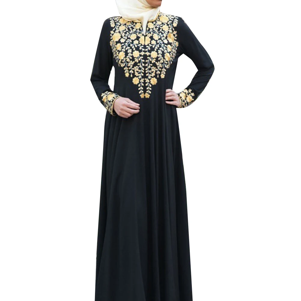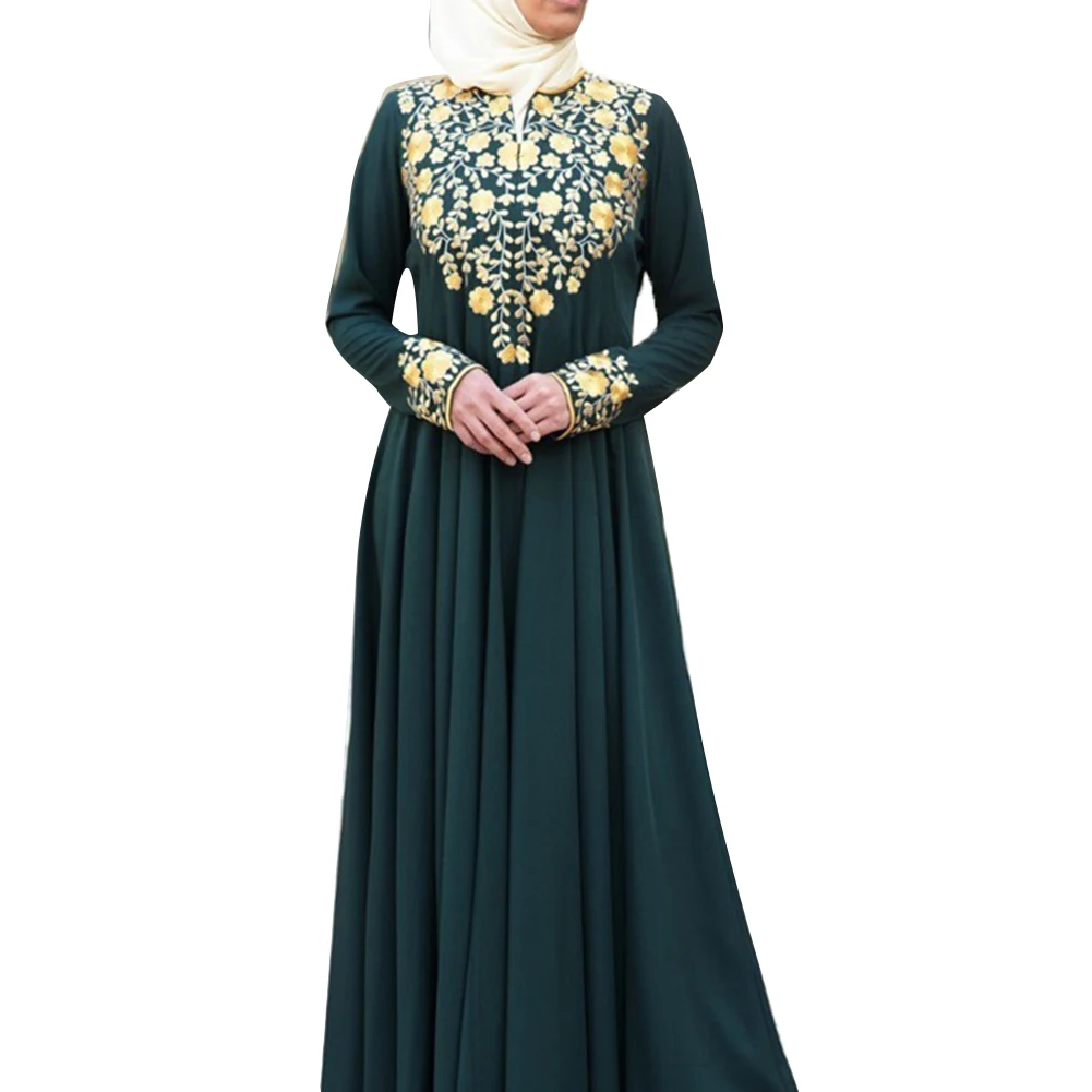 Женское платье с цветочной вышивкой, этническое мусульманское Макси-платье с длинным рукавом, кафтан, Халат