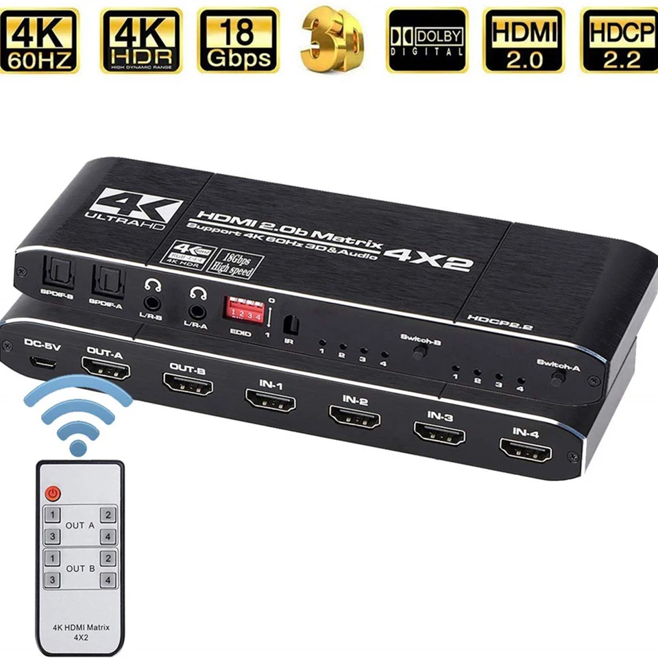 2019 4K HDMI матрица 4x2 Переключатель сплиттер Поддержка HDCP 2,2 ИК-пульт дистанционного управления HDMI переключатель 4x2 Spdif 4K 30Hz HDMI 4x2 матричный переключатель