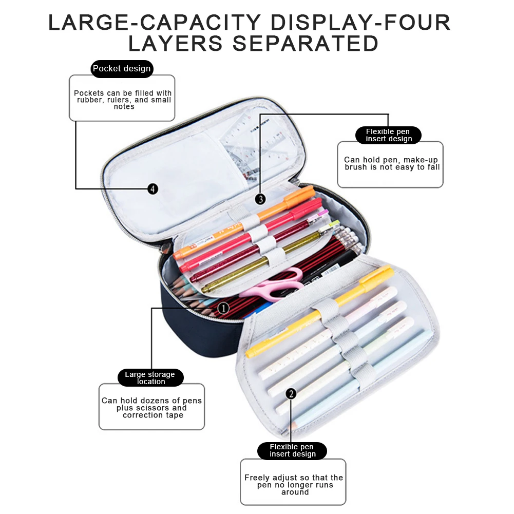 Название продукта:Большой Вместительный чехол-карандаш для хранения канцелярских принадлежностей, ручная Сумочка для ручек, несколько отсеков, двойная молния, портативный чехол-карандаш с паролем