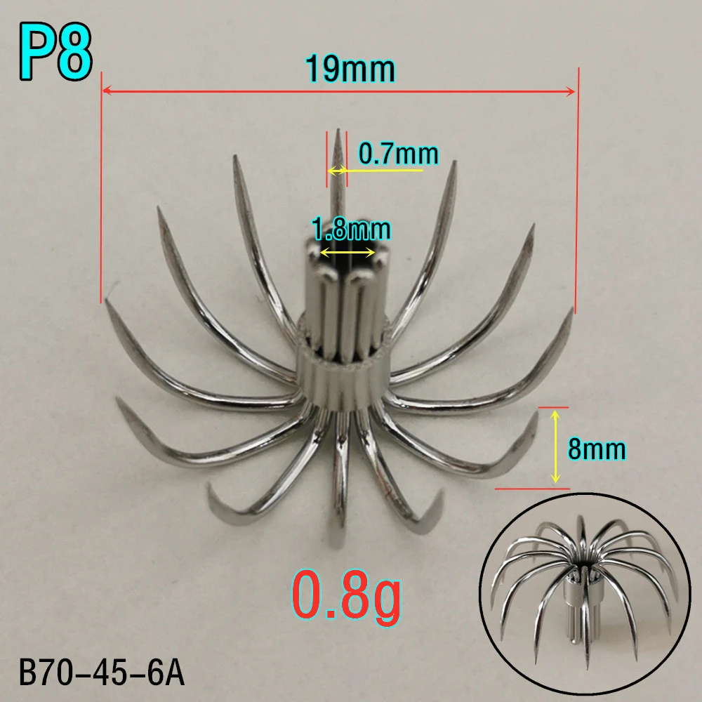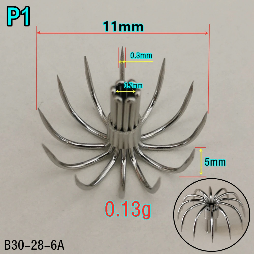 Kene является профессиональным мастером по производству кальмаров, у нас есть собственный завод по производству крючков для кальмаров. P series squid hook является эксклюзивным для открытого магазина и имеет независимую профессиональную форму. Крючки серии P имеют красивую форму, похожую на полукруглые, изготовлены из высококачественной нержавеющей стали 304.
