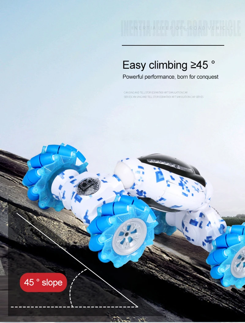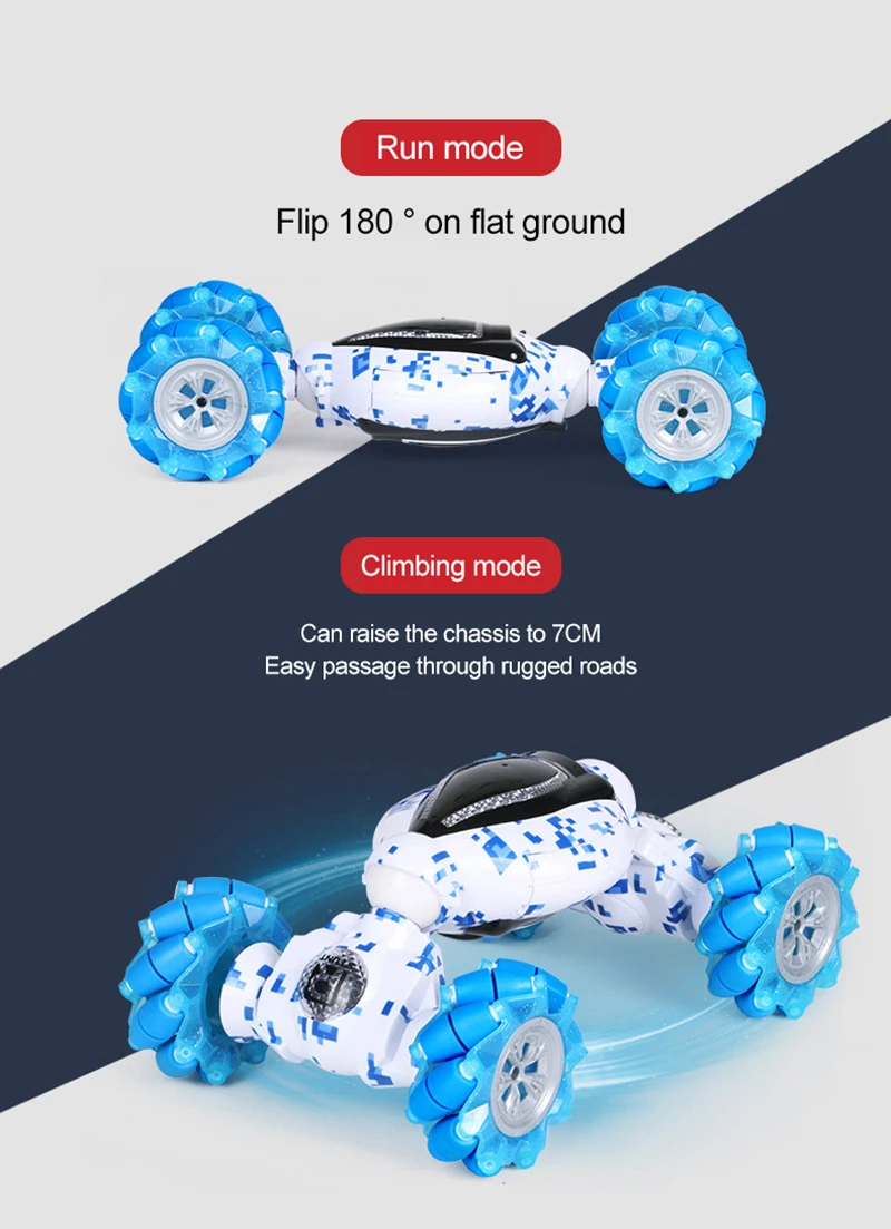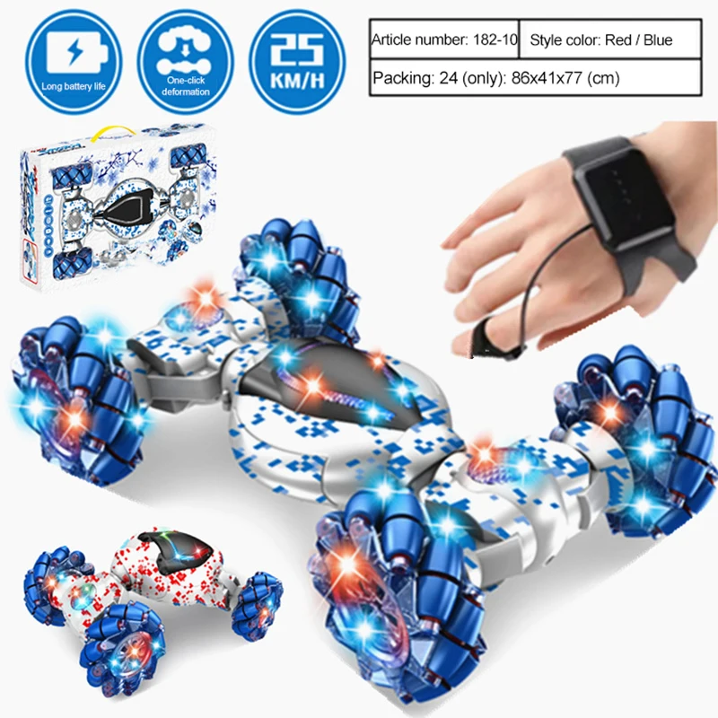 1:12 Gesture Sensing скручивание внедорожного автомобиля с дистанционным управлением каскадер автомобиль с светильник музыка Дрифт танцы двухсторонние игрушки для вождения автомобиля Технические характеристики: Название: 1:12 часы зондирования 10-way скручивания автомобиля Цвет: синий и белый фарфор красный, синий Упаковка: переносная оконная коробка Цвет Размер коробки: около 40*10,4*25 см/15,7*4 * 9.8in Размер корпуса: около 36*20*10 см/14,2*7,9*3,9 дюймов Частота: 2,4 ГГц Расстояние дистанционного управления: 80-100 метров Максимальная скорость: 25 км/ч Драйвер: 4 езды на автомобиле Батарея: 7,4 V литиевая батарея Батарея (все указанные аккумуляторы входят в комплект поставки) Время использования: около 25 минут Зарядка: 7,4 в USB кабель для зарядки (входит в комплект) Время зарядки: 90-150 минут Вес брутто/нетто: около 25/23 кг Пульт дистанционного управления: 3,7 V литиевая батарея с 3,7 V зарядный кабель Функции: распознавание жестов (можно выключить), 4 музыки с кнопками для переключения или выключения музыки, 7 ламп с дистанционным управлением выключения. Упаковочный лист: 1 * часы Сенсор 1 * корпус Батарея 1 * USB кабель для зарядки 1 * Инструкция