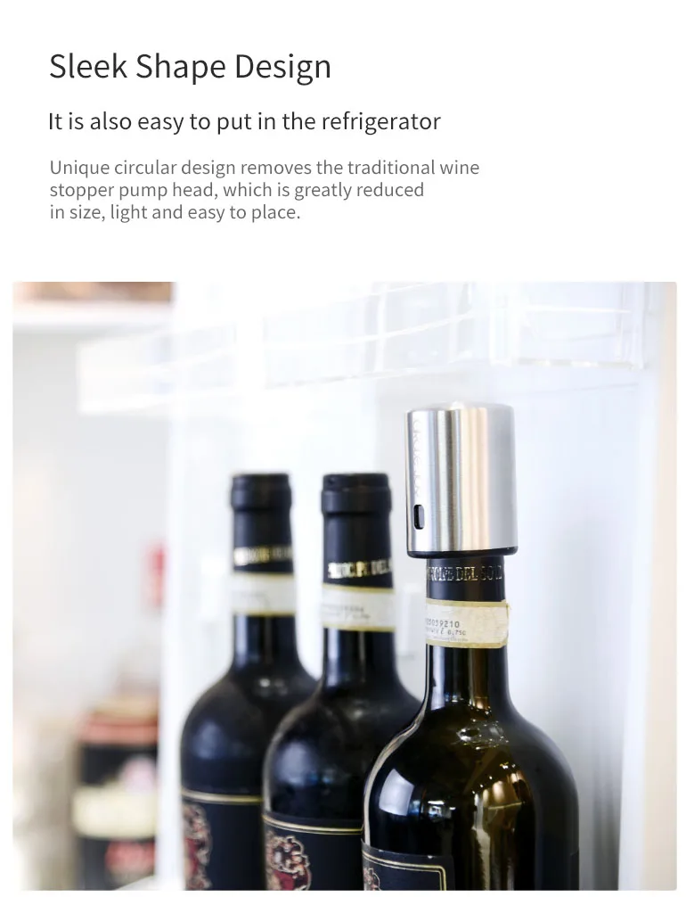 Уникальный круглый дизайн удаляет традиционную w-ine stopper головка насоса, которая значительно уменьшается в размере, легкий и легко разместить.