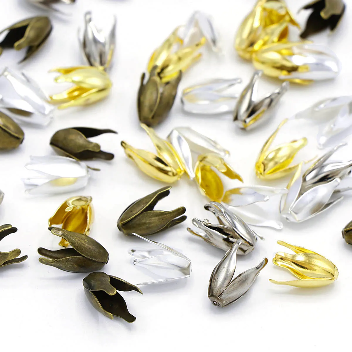 50-100 шт. золотистые/Серебристые античные Металлические колпачки для цветочных бусин своими руками, Металлические колпачки для бусин-лепестков, фурнитура для ювелирных изделий, подвески-соединители для ювелирных изделий