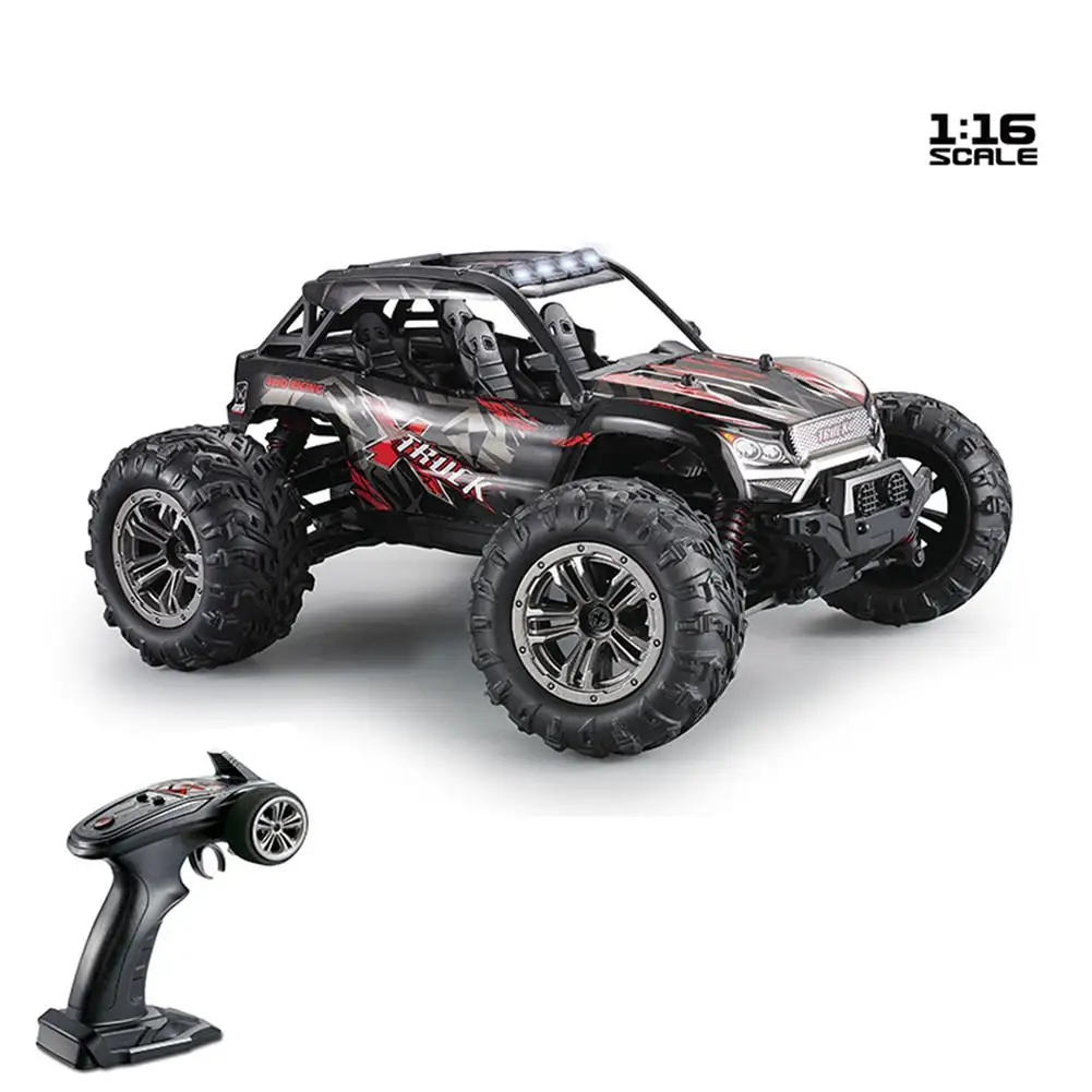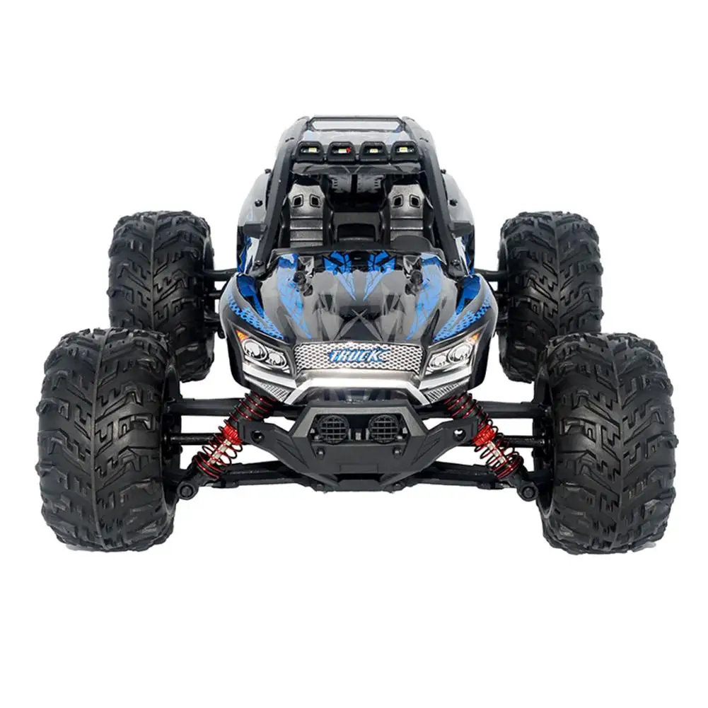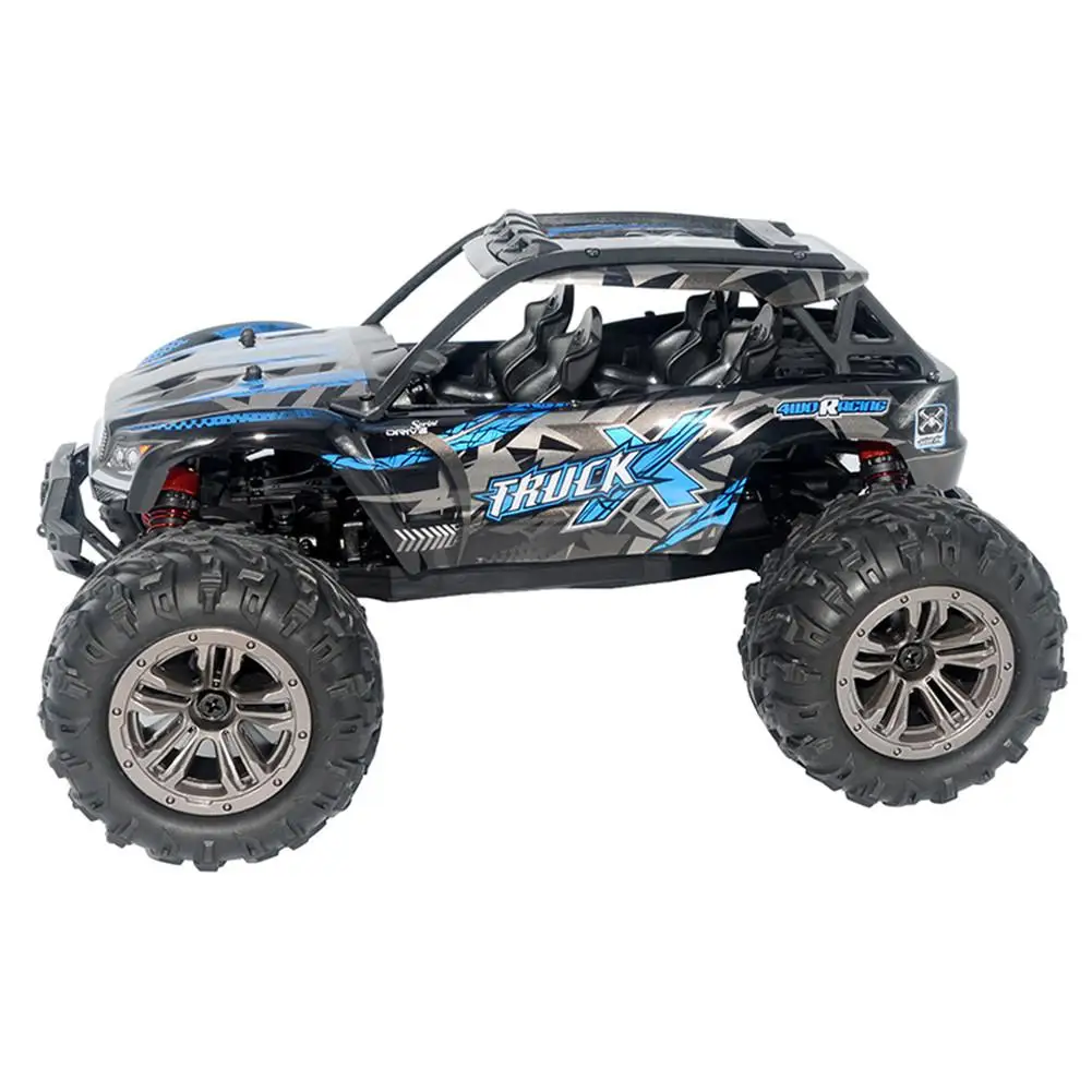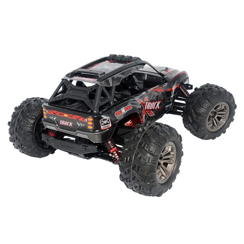[Щеточный двигатель и более мощный] -- с начесом мощного встроенного двигателя, максимальная скорость до 36 км/ч, этот скоростной трюк RC cross countryvehicle принесет вам большой опыт скорости. Резиновые колеса из ПВХ мягкие, эластичные, противоударные и противоскользящие. Четыре подвески и пружины, ударопрочная система и лучшая защита электронных компонентов.