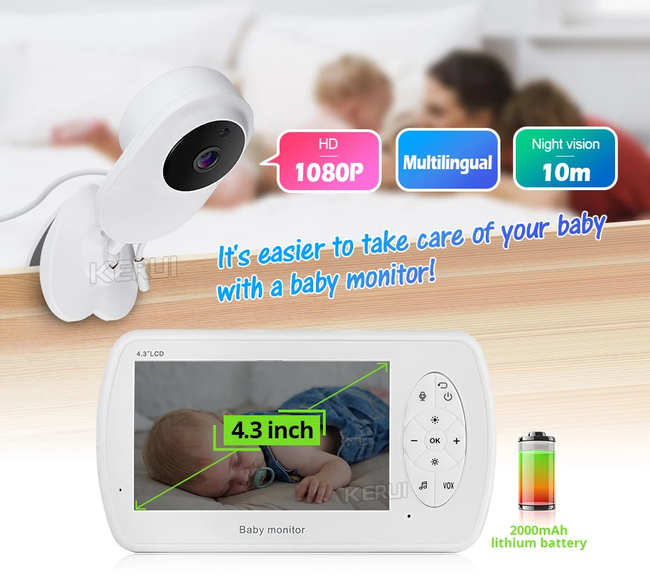 Беспроводная видеоняня KERUI, экран 4,3 дюйма, 2 Мп, 1080P, радионяня с камерой, датчик температуры, ночное видение