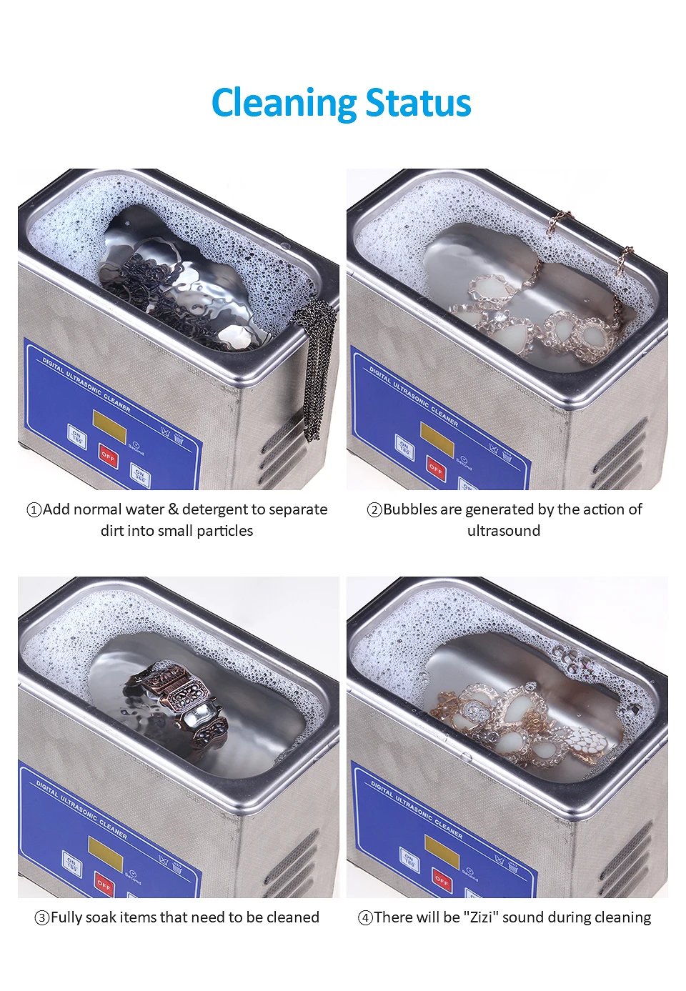 0.6L Ультразвуковой очиститель ванн промывочного бака для стекла, ювелирных изделий, часов, кольцо для монет