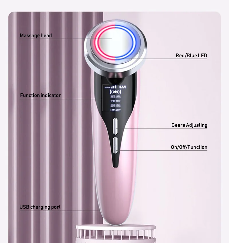 Портативный Салон красоты, используется ежедневно, в сочетании с положительным и отрицательным ионом импорт и экспорт, очищение и детоксикация, омоложение кожи, отбеливание, фототерапия, укрепляющий и лифтинг, комплексный уход, оставляя кожу увлажненной. Особенности продукта: 1. Отбеливает кожу; Повышает эффективность удаления макияжа и маски. 2. Глубоко очищает кожу и повышает эластичность кожи; 3. Предотвращает появление морщин, удаляет морщины; 4. Очистите акне и удалите пятна; 5. Улучшает влагу кожи; 6. Глубоко вводит средства по уходу за кожей для эффективного повышения эффективности средств по уходу за кожей; Семь, быстро удаляет темные круги; 8. Ежедневный уход, улучшение качества кожи. Четыре режима: 1. Красный луч: ионный красный светильник питает и двойной эффект поглощения 2. Синий луч: улучшает акне и проблемы с акне, помогает очистить бактерии и затянуть поры 3. Магнитный экспорт тепла: помогает более эффективно удалять грязь при удалении макияжа. 4. Уход за глазами: улучшает тонкие линии вокруг глаз и способствует поглощению крема для глаз. Примечание: Эта машина не является водонепроницаемой, пожалуйста, держите тело сухим и чистым. Люди с чувствительной кожей могут использовать низкоклассный режим, но не рекомендуется использовать его каждый день, 1-2 раза в неделю
