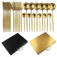 Черный позолоченный набор столовых приборов нож вилка ложка набор столовых приборов 18/10 нержавеющая сталь набор посуды для отеля посуда подарочная коробка